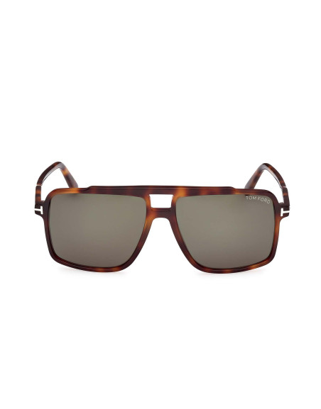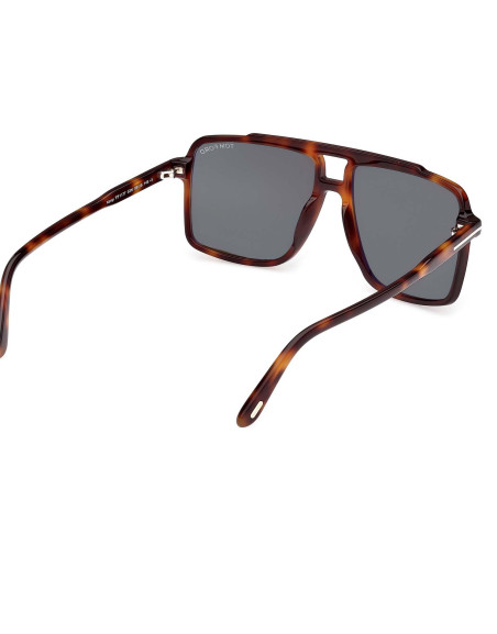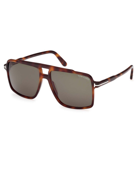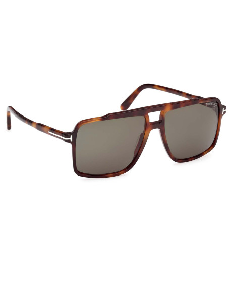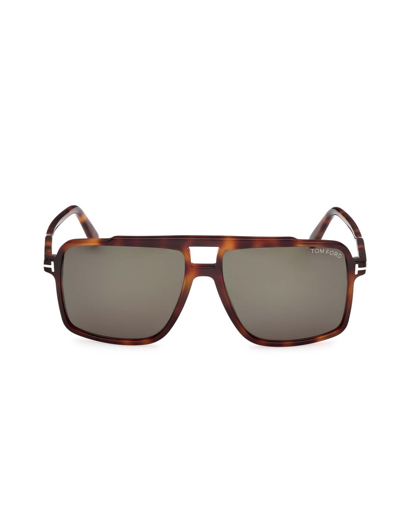Montatura da sole Tom Ford uomo pilot dalla linea vintage e il profilo squadrato. Caratterizzata dal logo a forma di T su aste e frontale.