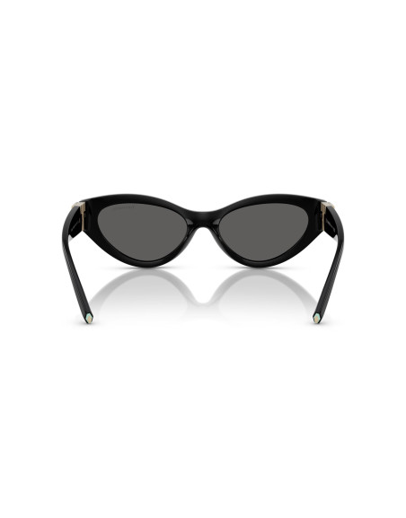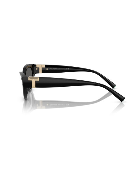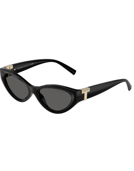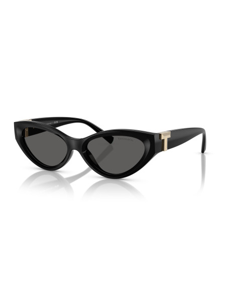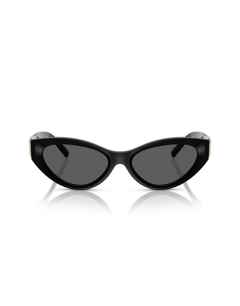 Occhiali da sole Tiffany & Co. dal design cat-eye stretto e look contemporaneo total black. Aste spesse con motivo a T sfaccettato.