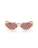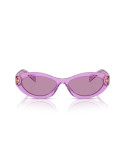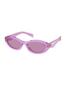 Occhiali da sole Prada da donna con montatura in acetato lucido color ametista trasparente e lenti viola. Un modello che si distingue per il suo particolare design sfaccettato delle aste, ispirato all'iconico triangolo e arricchito dal logo Prada.