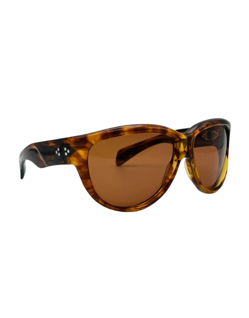 Jacques Marie Mage Ravello raven, ispirati al fascino cinematografico degli anni Sessanta, evocano l’atmosfera luminosa e spensierata di un’estate senza tempo sulla Costiera Amalfitana. Realizzati a mano, presentano una silhouette rotonda e avvolgente dalle proporzioni generose, espressione di eleganza scultorea e carisma contemporaneo. La montatura in acetato havana da 10 mm, con aste a doppia laminatura e dettagli in metallo prezioso, rivela l’inconfondibile firma del marchio: rivetti a forma di sperone, cerniere a sette snodi e anima metallica “Dao” finemente incisa. Le lenti marroni completano il look con un tocco di glamour e sofisticata intensità.