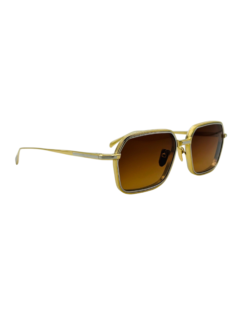 Occhiali da sole Jacques Marie Mage Admiral Roma, ispirati all’eleganza decisa degli anni Settanta, rappresentano un connubio impeccabile tra potenza e precisione. La montatura rettangolare in oro e argento, interamente realizzata in beta titanio, si distingue per i raffinati inserti e per i dettagli incisi a linea sottile che ne esaltano la struttura. L’estetica pulita e aerodinamica, unita alla maestria artigianale, conferisce a questo modello un carattere autorevole e contemporaneo. Le lenti rosse sfumate aggiungono profondità e fascino, completando un design pensato per chi interpreta lo stile come espressione di leadership e forza interiore.