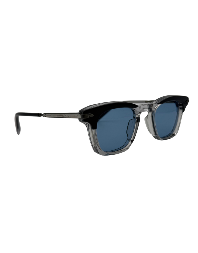 Occhiali da sole Kennedy Sulfur di Jacques Marie Mage esprimono un’eleganza decisa e senza tempo, ispirata all’estetica americana degli anni Sessanta. La montatura da 12 mm in cellulosa di acetato polimerizzata, nella tonalità sulfur con brow grigio, è abbinata a sottili aste in beta-titanio gunmetal con raffinati accenti in palladio argento e terminali in acetato grigio. Completano il modello lenti Armorlite base 4 nella tonalità azure con trattamento antiriflesso sul lato interno. Realizzati in edizione limitata e numerata, incarnano l’inconfondibile equilibrio tra rigore, artigianalità e carattere che definisce l’universo Jacques Marie Mage.