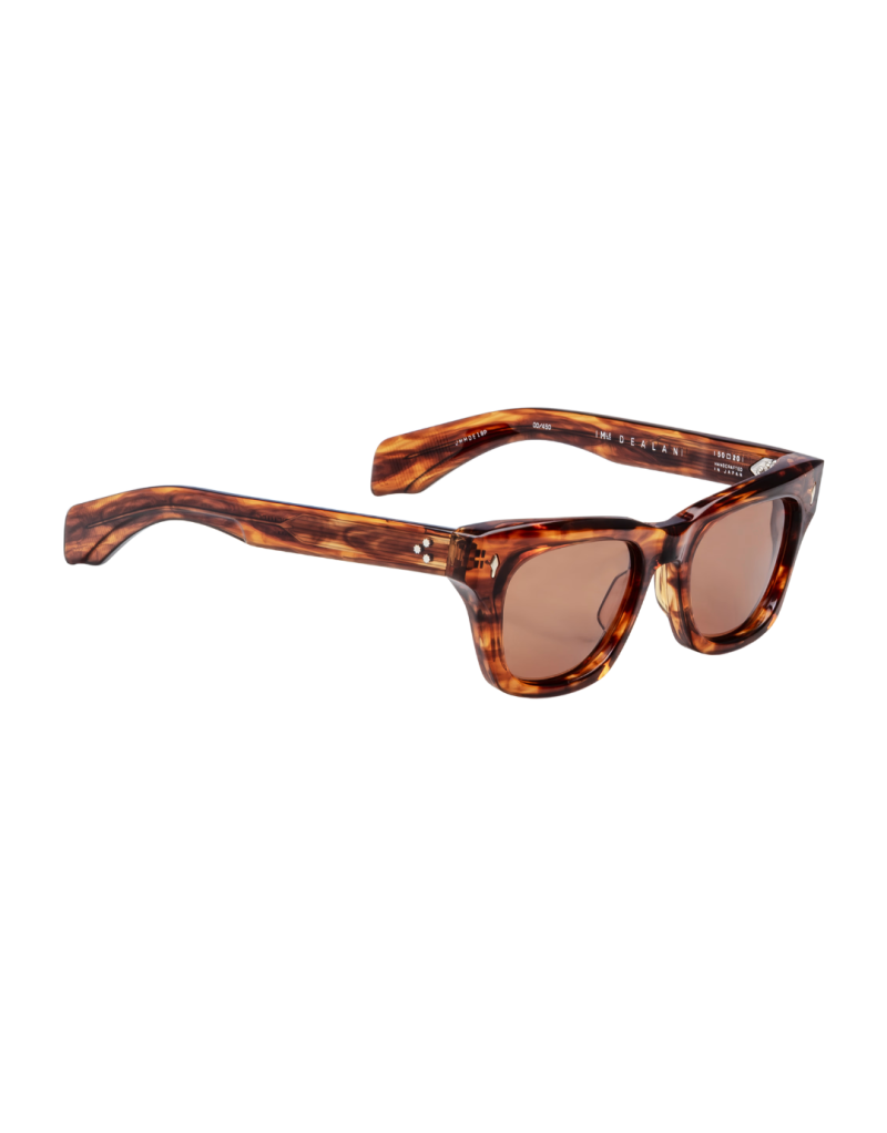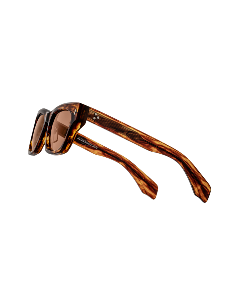 Occhiali da sole Jacques Marie Mage DEALAN Bourbon, incarnano il legame profondo tra un artista e i suoi occhiali. Ispirati all’estetica audace degli anni ’60, uniscono volumi scolpiti, linee essenziali e dettagli in metallo prezioso in un design senza tempo, ricco di carisma e personalità. La montatura in acetato Bourbon da 10 mm, con aste laminate personalizzate e anima in metallo finemente incisa, è completata da iconici perni frontali a forma di freccia e cerniere rinforzate a sette snodi. Le lenti, dotate di trattamento antiriflesso interno e protezione UV al 100%, offrono comfort visivo e protezione ottimale. La forma squadrata conferisce un’eleganza decisa, perfetta per chi cerca un accessorio distintivo e intramontabile.