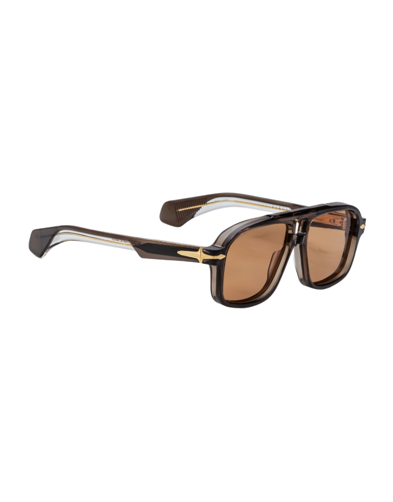 Occhiali da sole Jacques Marie Mage ELKHART London in edizione limitata, dove il profilo scultoreo dell’arcata superiore e la costruzione stratificata donano profondità a una silhouette raffinata. I dettagli artigianali — come le cerniere custom a 7 barilotti e i wirecore classici finemente lavorati — conferiscono un carattere sobrio ma deciso, fondendo estetica funzionale anni ’80 e maestria sartoriale di altissimo livello.