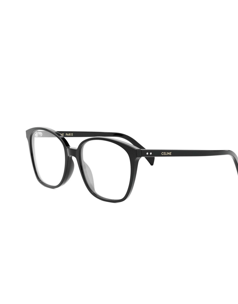 Occhiali da vista Celine con montatura in acetato nero lucido. Un modello leggero dalla butterfly quadrata per un look elegante.