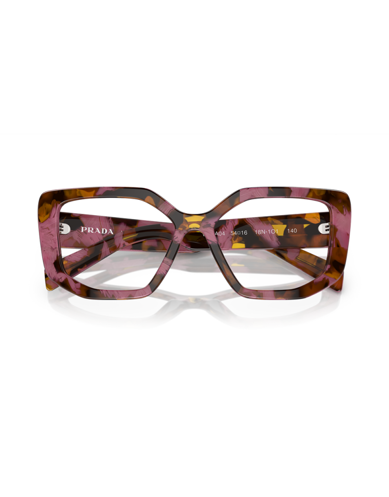 Occhiali da vista Prada da donna con montatura in acetato lucido effetto tartarugato con sfumature rosa. Design scultoreo e sfaccettato dalla forma irregolare a farfalla con firma Prada sulle aste. Adatto per ogni fisionomia, un accessorio che arricchisce i tuoi look rendendoli unici ed eleganti.