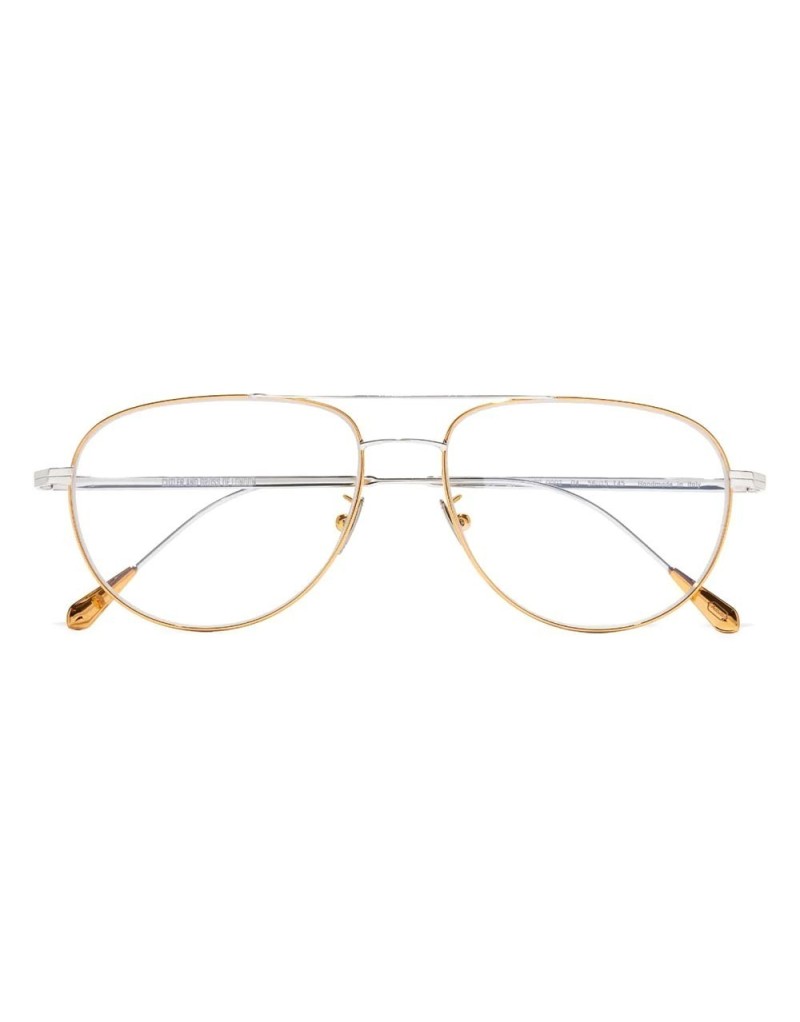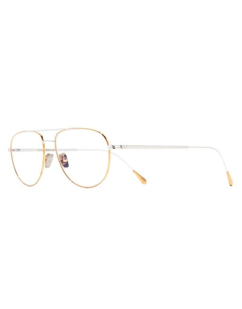 Occhiali da vista Cutler & Gross realizzati con una combinazione di Oro Giallo 24K e Rodio 18K. Una montatura extra sottile e leggera, dalla forma aviator a doppio ponte con naselli regolabili. Un accessorio prezioso e unico realizzato con materiali di altissima qualità
