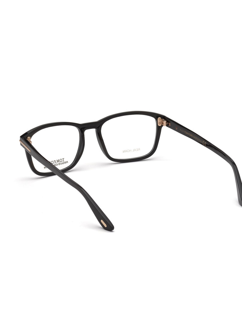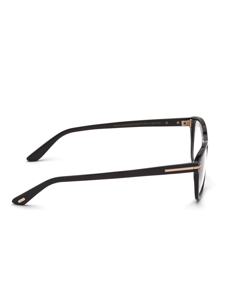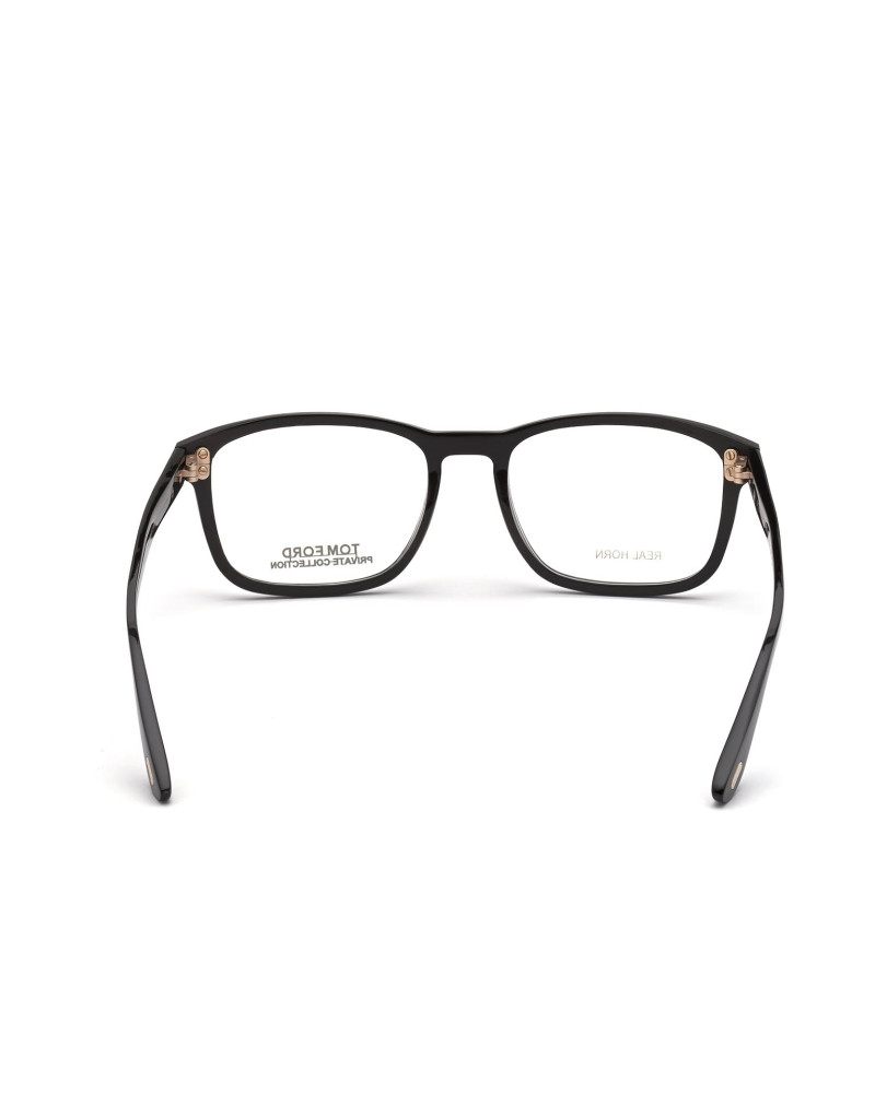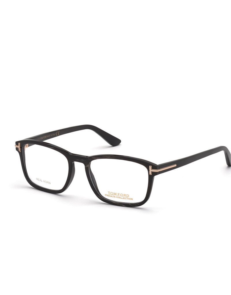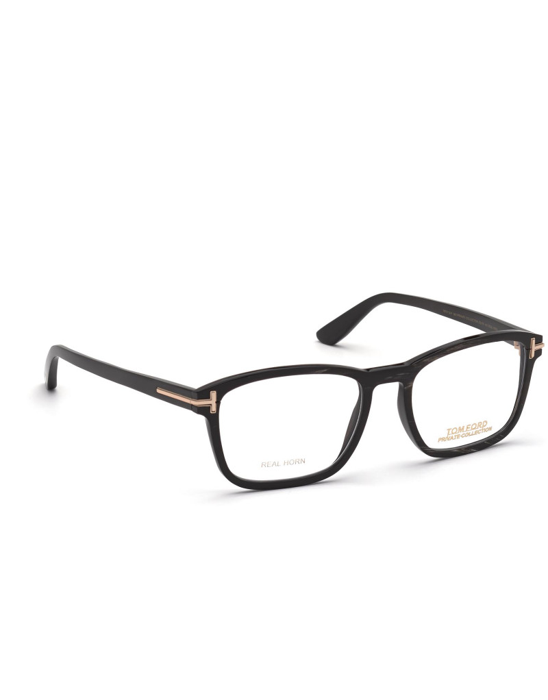 Montatura da vista Tom Ford Private Collection in corno di bufalo, dalla linea rettangolare, contraddistinta da logo oro T su aste e musetti.