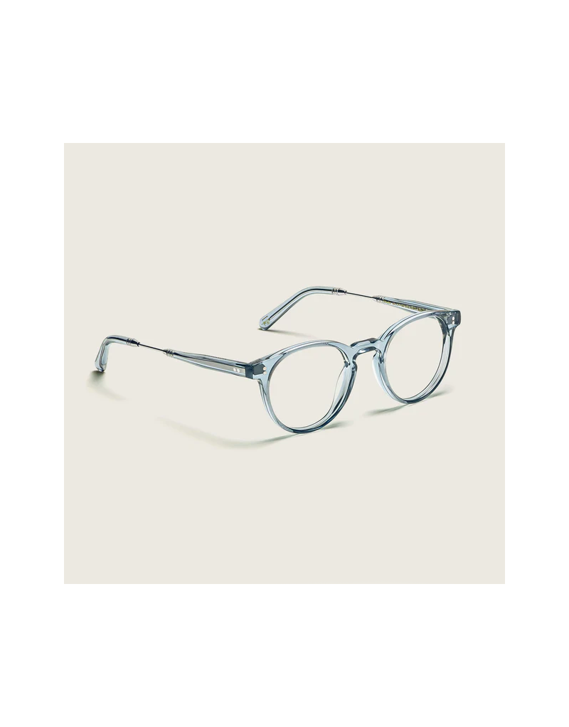 Golda, il nuovo modello di punta di Moscot che rende lo stile tondeggiante ancora più delicato e versatile. Realizzato con acetato made in Italy, nella colorazione light blue donerà al vostro look un tocco di originalità senza perdere in raffinatezza.