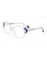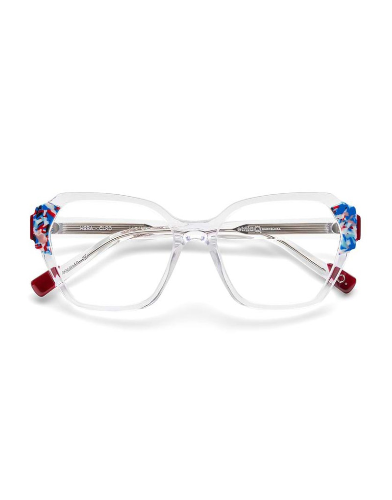 Montatura da vista in forma butterfly dal design deciso, arricchita dai dettagli in colore a contrasto sui finali delle aste e sui lati del frontale. Realizzata in acetato Mazzucchelli, made in Italy.