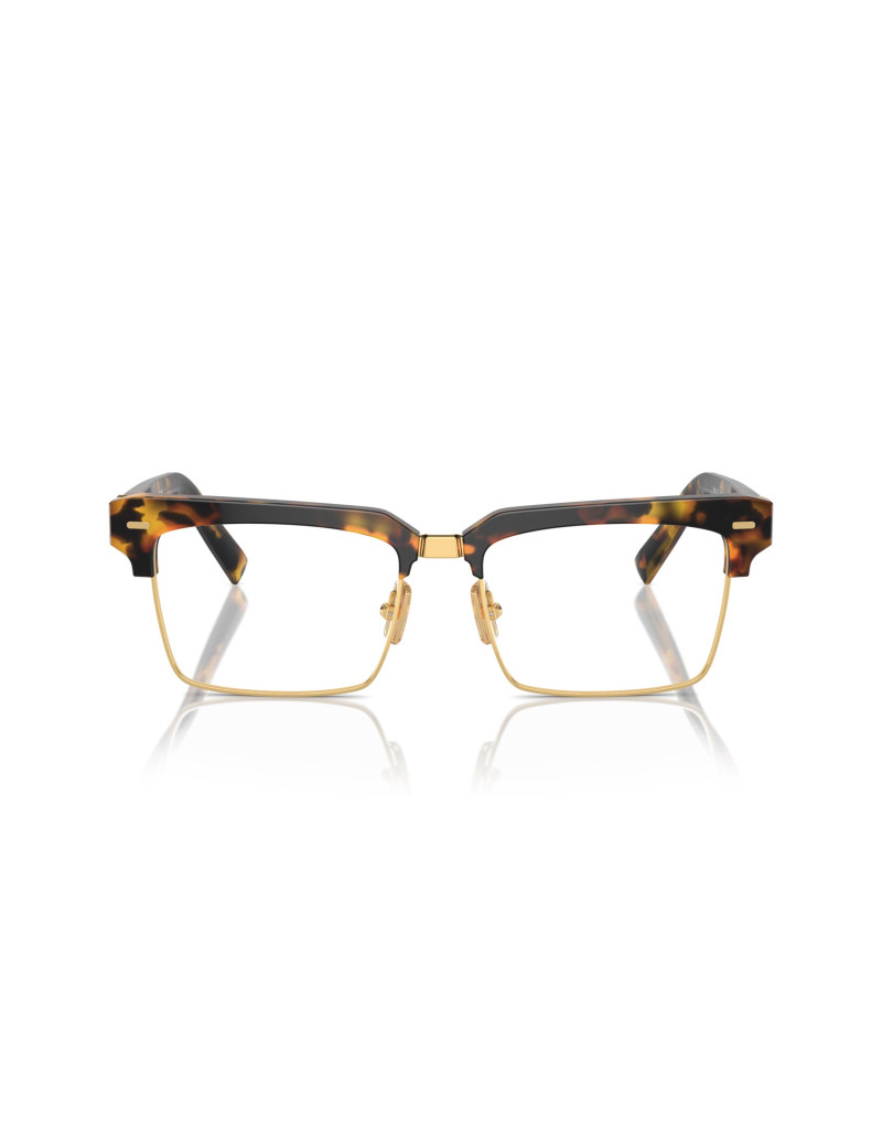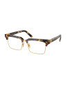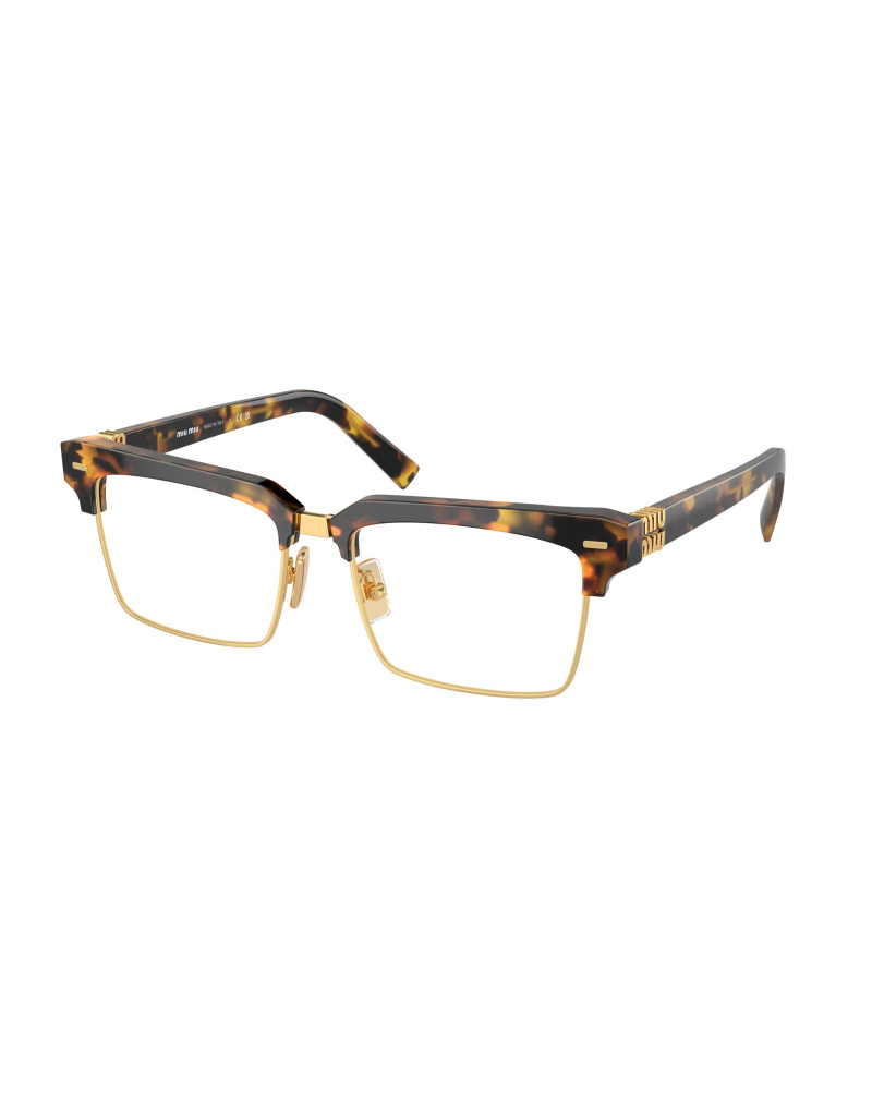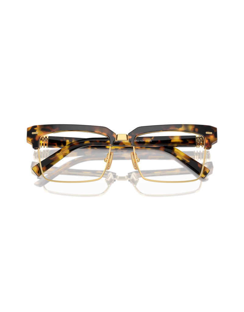 Occhiali da vista Miu Miu da donna con montatura combinata in metallo dorato e acetato havana miele. Un modello rettangolare che dona grinta e personalità.