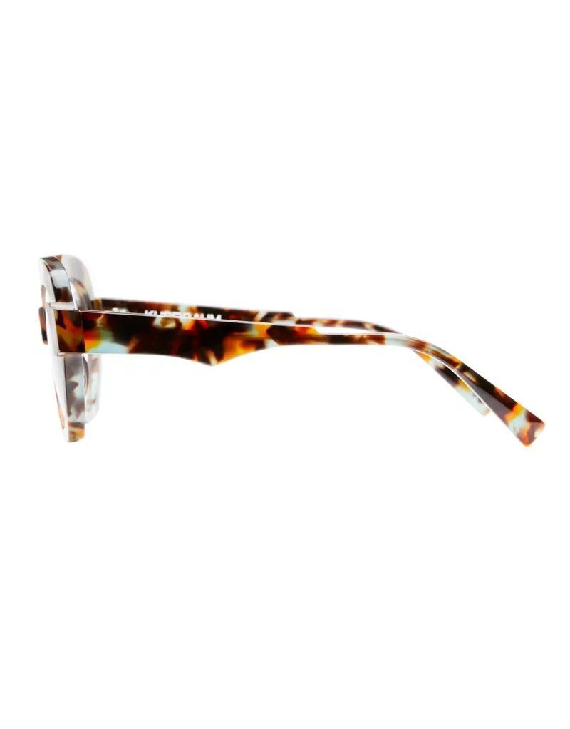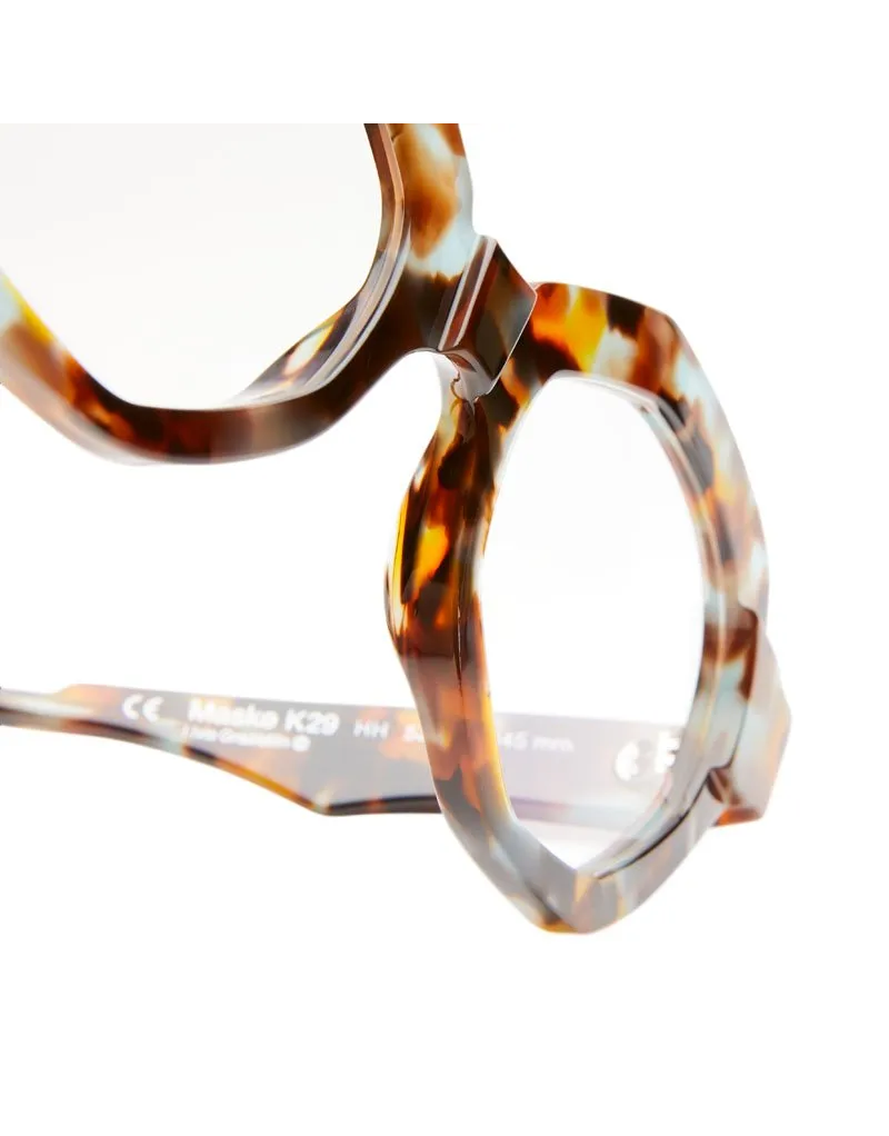 Montatura per occhiali da vista Kuboraum in pregiato acetato italiano Mazzucchelli, dal design unico nel suo genere, che incornicia lo sguardo con geometrie inedite.