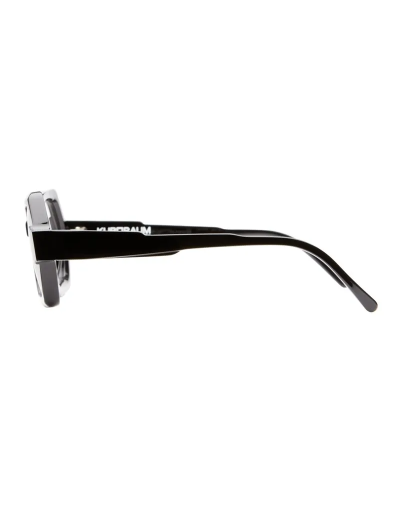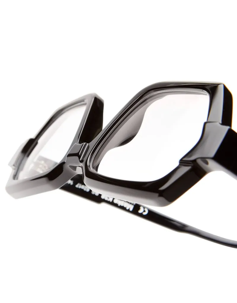 Montatura per occhiali da vista Kuboraum in pregiato acetato italiano Mazzucchelli, dal design unico nel suo genere, che incornicia lo sguardo con geometrie inedite.