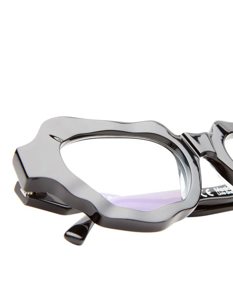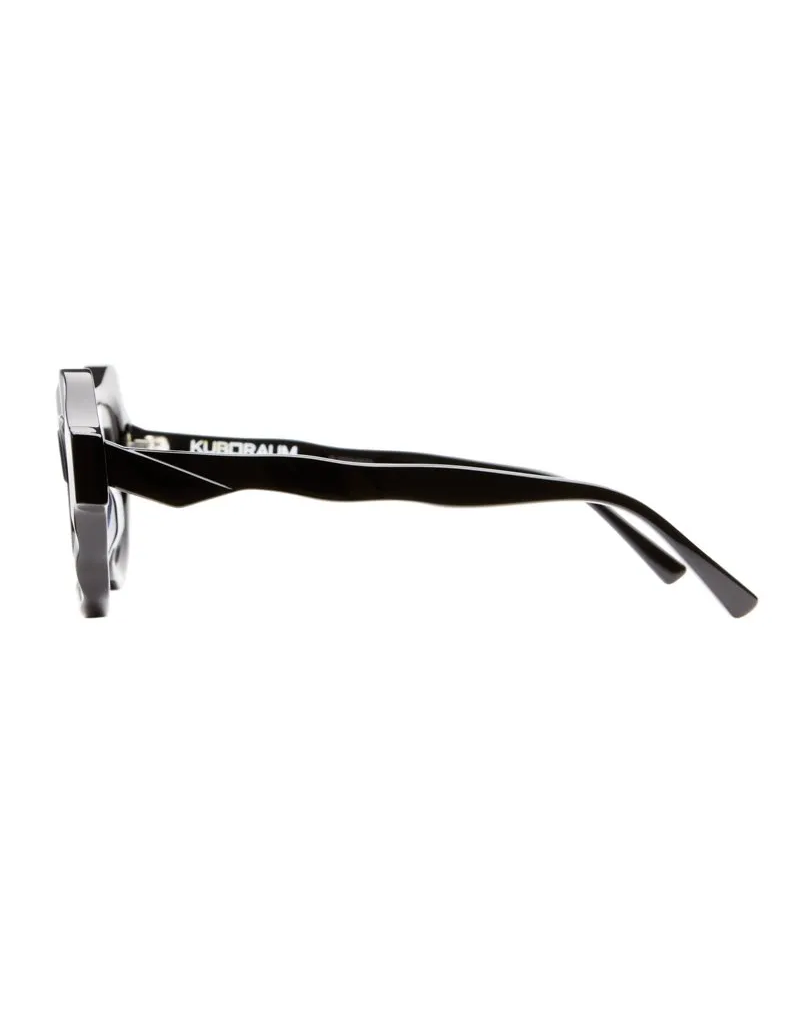 Occhiali da Vista Kuboraum in acetato nero Mazzucchelli, garanzia di qualità made in Italy e dalla forma irregolare. Occhiali che incorniciano con stile lo sguardo di chi li indossa.