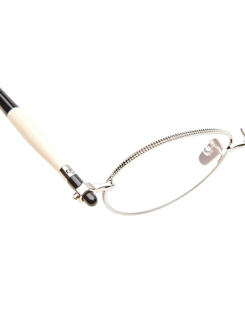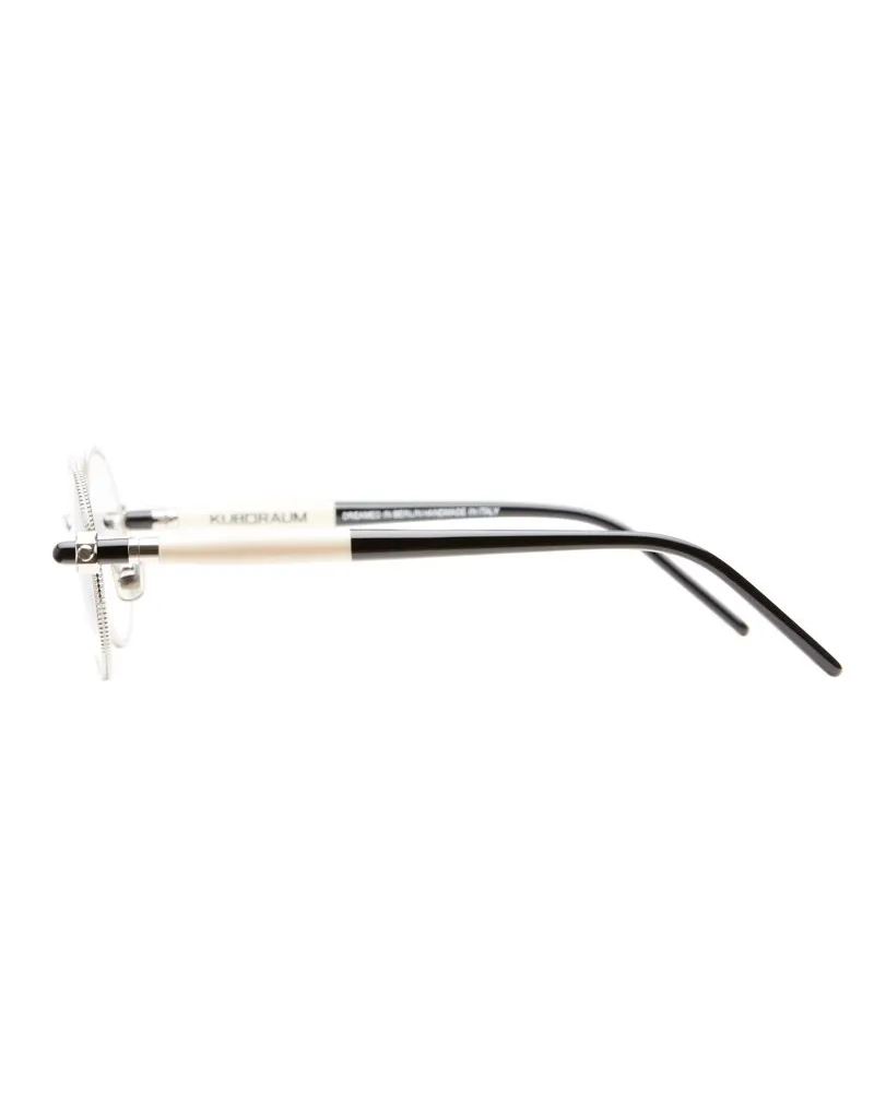 Occhiali da vista Kuboraum con montatura in metallo e aste tubolari in acetato, per uno stile originale e di classe. Questo modello è stato realizzato interamente a mano in Italia.