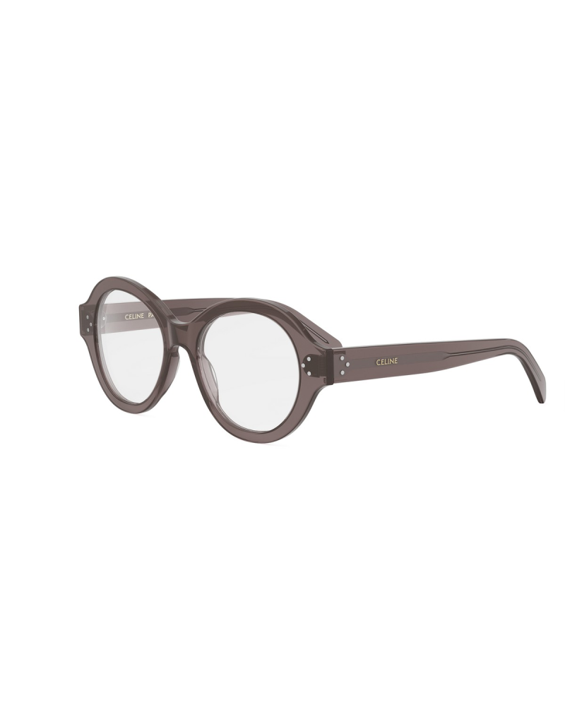 Occhiali da vista Celine da donna con montatura in acetato lucido marrone trasparente. Un modello raffinato e chic dalla forma rotondeggiante, che dona carattere ed eleganza allo sguardo di chi lo indossa.