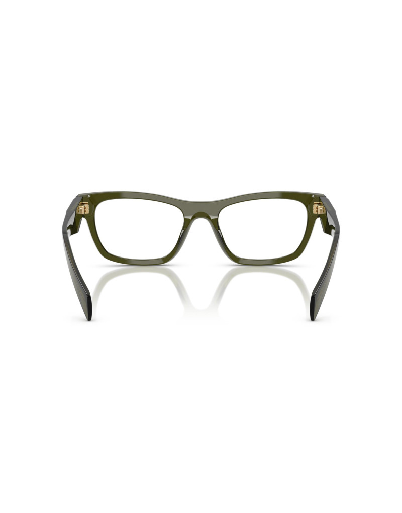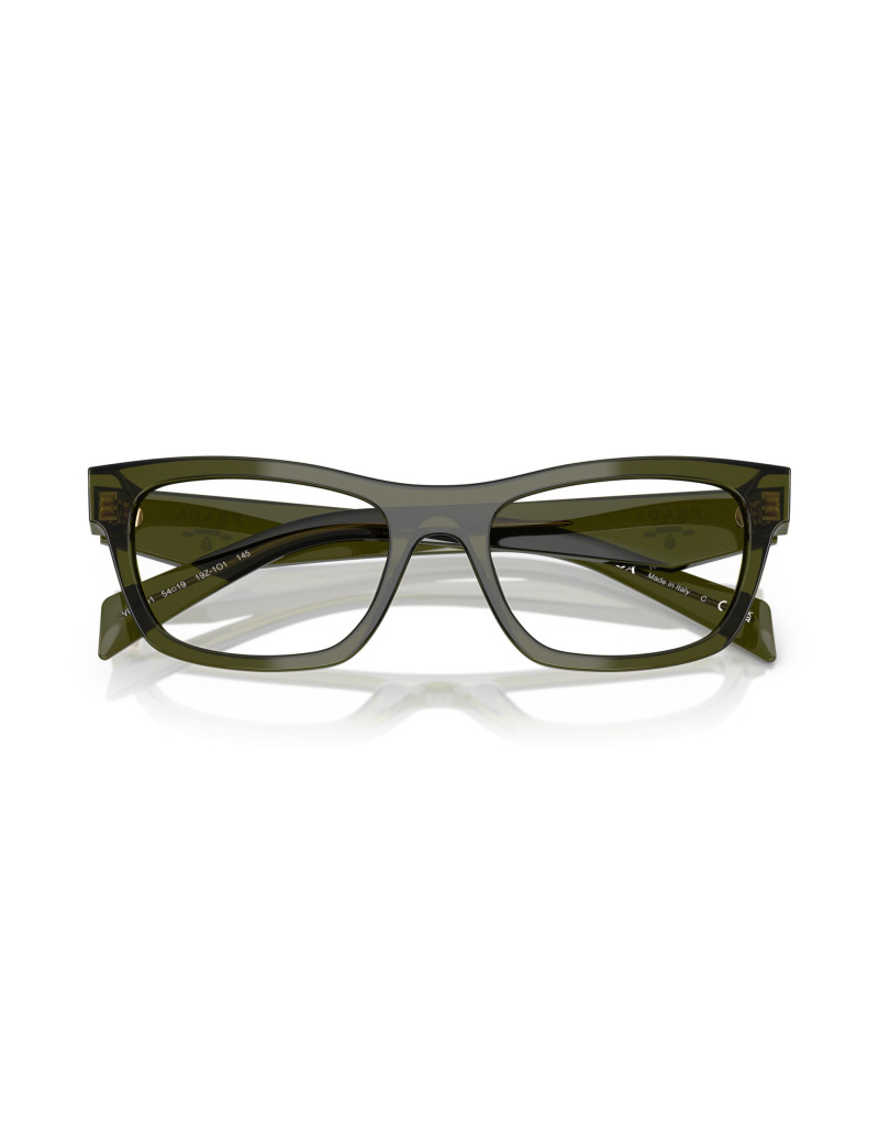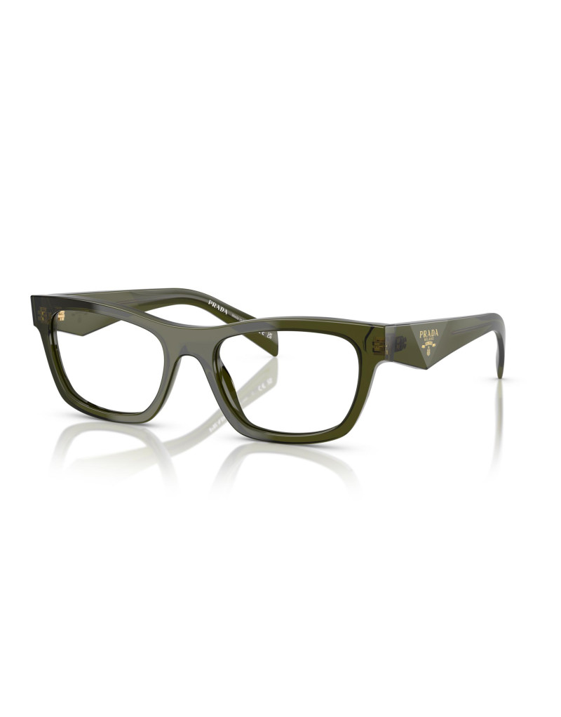 Occhiali da vista Prada Symbole incarna l'eccellenza italiana, con superfici angolari e triangolari sfaccettate sulle aste, arricchite discretamente dal logo Prada. Disponibile in colori classici e opzioni trasparenti moderne come questa variante color bottiglia, che unisce stile senza tempo a un tocco contemporaneo.