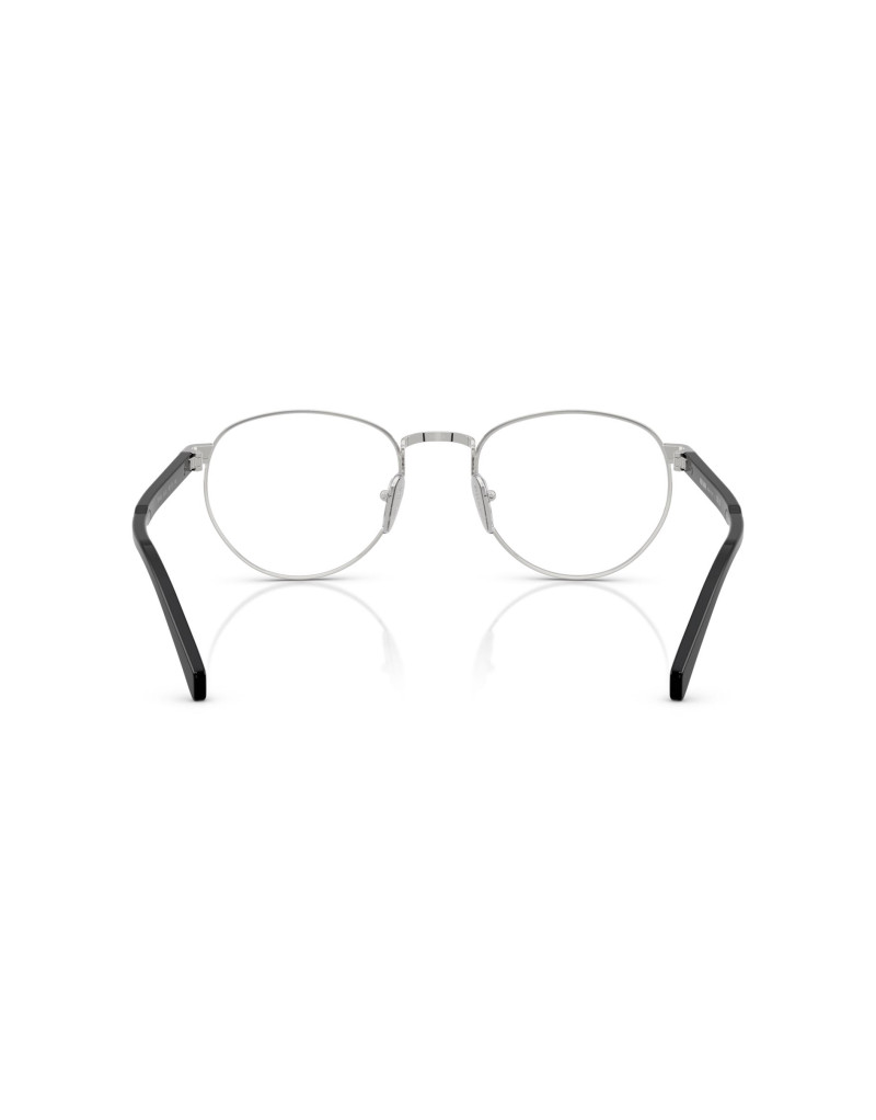 Occhiali da vista Prada uomo dalla forma panthos. Questi occhiali realizzati in metallo incarnano una sofisticazione senza pari, ottenuta grazie alla combinazione sapiente di materiali contrastanti. La montatura metallica dal design elegante, con la parte frontale rotonda, è impreziosita da una placca con il logo Prada. Le aste in acetato, disponibili in diverse tonalità, completano il look con un tocco di modernità e stile.