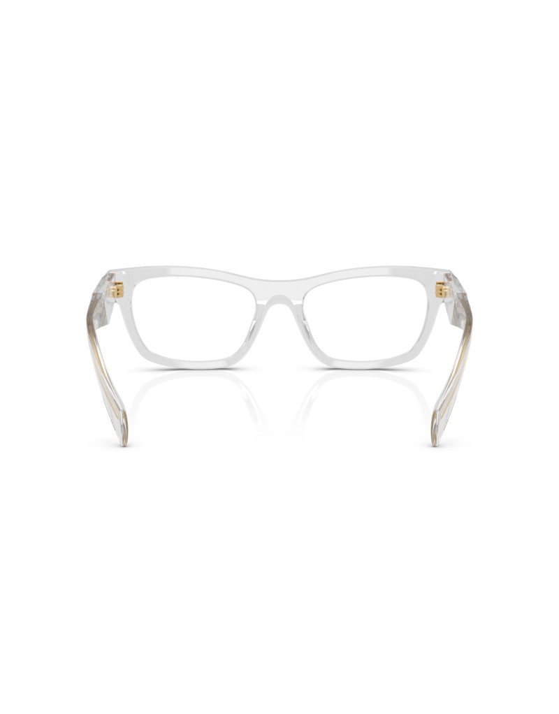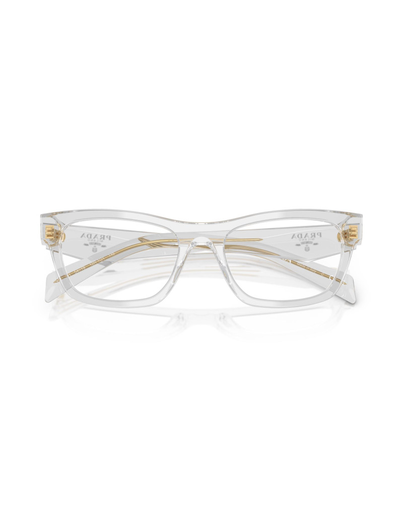 Occhiali da vista Prada Symbole incarna l'eccellenza italiana, con superfici angolari e triangolari sfaccettate sulle aste, arricchite discretamente dal logo Prada. Disponibile in colori classici o come questo modello in trasparente, sono occhiali che uniscono stile senza tempo a un tocco contemporaneo.