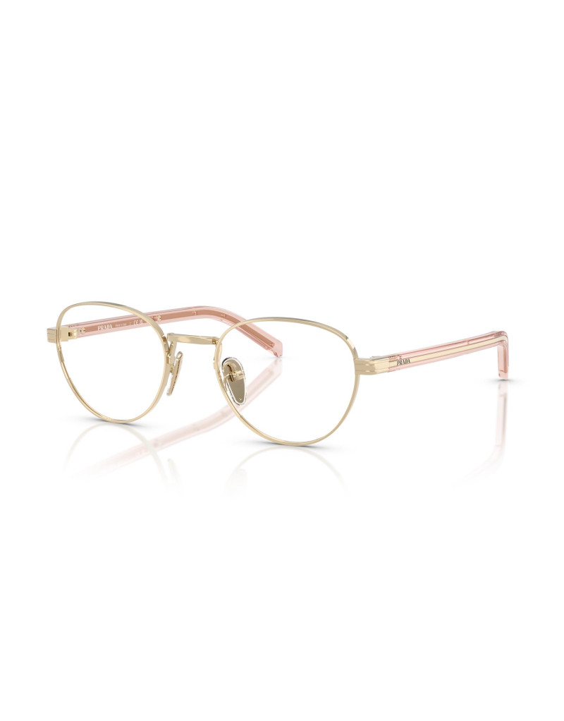 Occhiali da vista Prada B53V con montatura in metallo dorato, dal design elegante e leggero. La forma ovale è perfetta per un look sofisticato e moderno, adatta a diversi tipi di viso. Ideali per chi cerca uno stile raffinato senza rinunciare alla qualità.