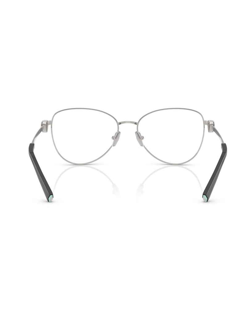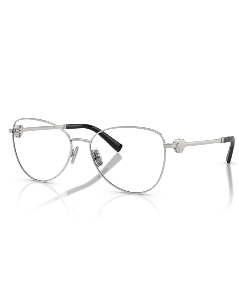 Occhiali da vista Tiffany & Co. 1163b da donna, che con una forma irregolare ed oversize, uniscono eleganza e modernità in un design raffinato. La montatura in metallo argentato è corredata da un dettaglio a forma di cuore sulle aste, che aggiungono un tocco esclusivo e distintivo. Questi occhiali sono ideali per chi cerca uno stile sofisticato e riconoscibile, con un accento di lusso che richiama l'iconico colore della maison Tiffany.