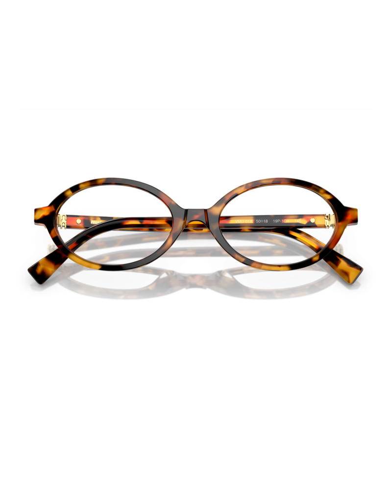 Occhiali da vista Miu Miu 01XV VAU1O1 50 per donna che presentano una montatura elegante e sofisticata in color havana/nero, caratterizzata da tonalità calde e raffinate. La forma ovale e il design delicato conferiscono un aspetto femminile e moderno, perfetto per chi cerca un look distintivo e di classe. Con il suo tocco di lusso e l'attenzione ai dettagli, questo modello Miu Miu è l'accessorio ideale per unire comfort e stile in ogni occasione.