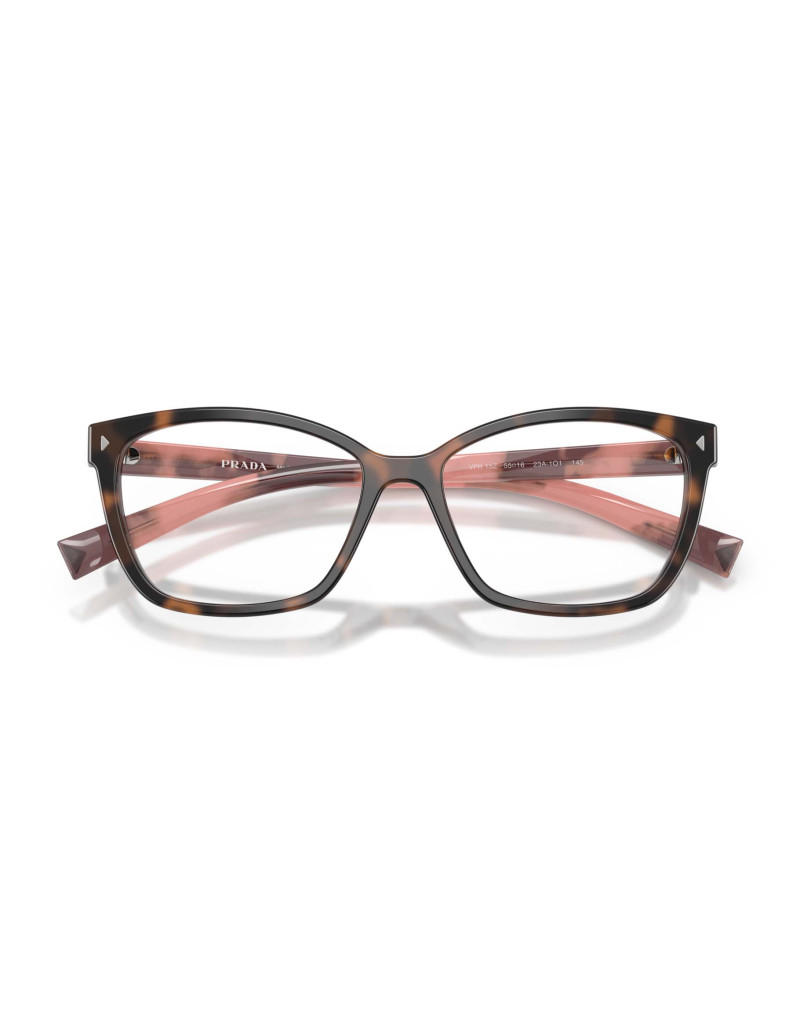 Occhiali da vista Prada 15ZV 23A1O1 da donna in acetato havana scuro e aste rosa presentano il distintivo design classico ma allo stesso tempo contemporaneo grazie alla diversa colorazione tra frontale e aste. Comodo e leggero, è un perfetto alleato per ogni look.