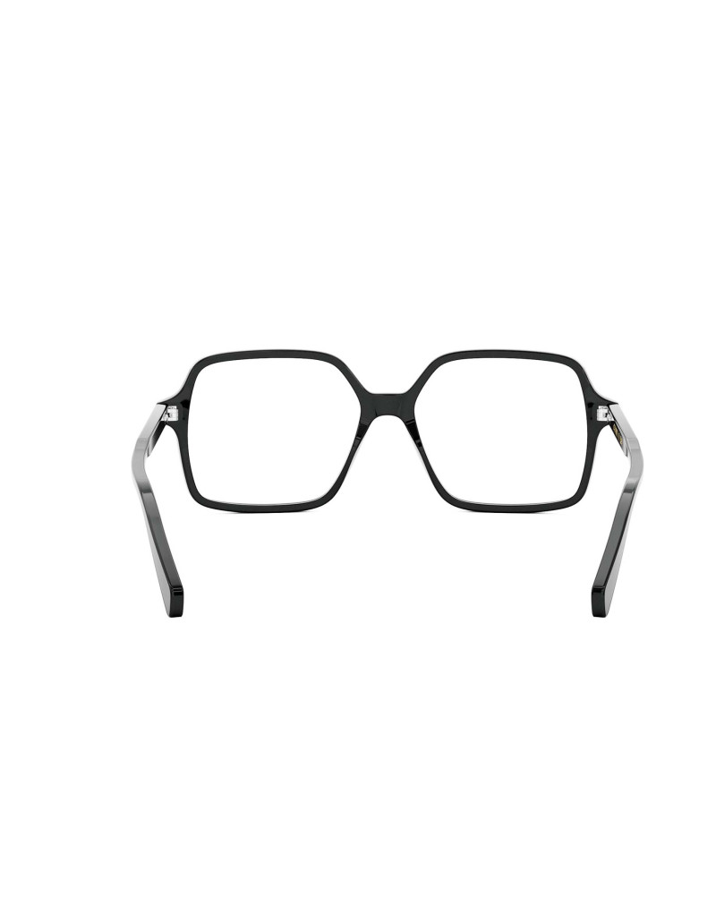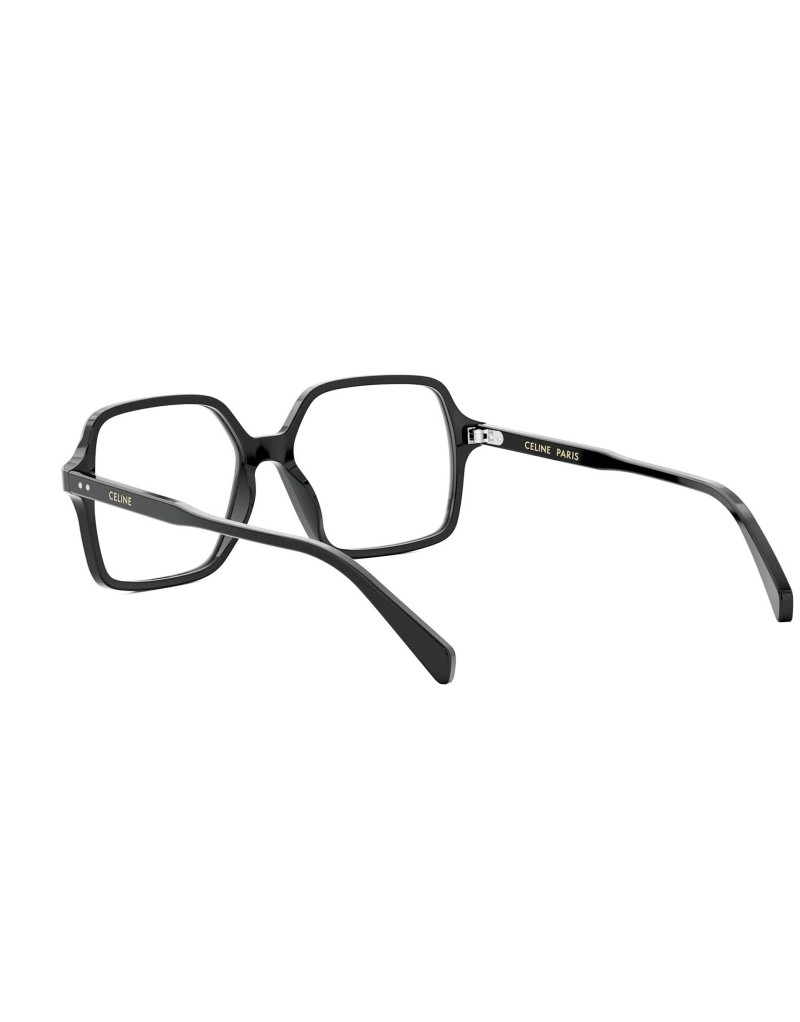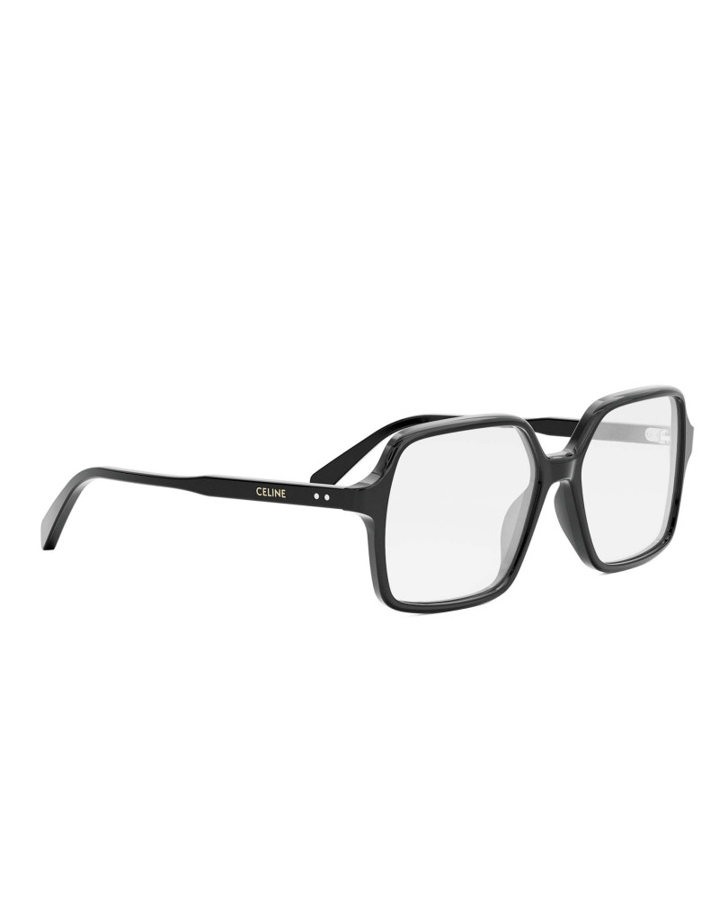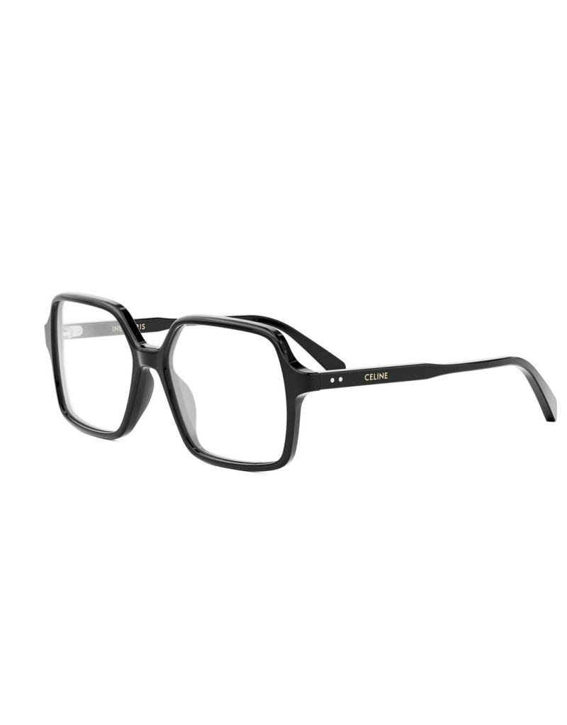 Occhiali da vista Celine CL50126I 001, un modello oversize che fonde eleganza e modernità. La montatura in acetato nero lucido presenta una forma geometrica squadrata, conferendo un aspetto sofisticato e contemporaneo. Il design minimalista è arricchito dalla tripla borchia sulle aste, simbolo distintivo del brand.