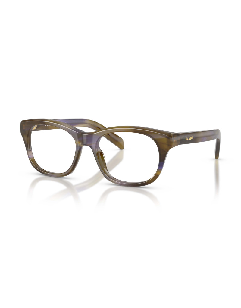 Occhiali da vista Prada C13V con montatura in acetato striato lucido. Modello da donna dalla forma rettangolare con firma Prada sulle aste. Adatto per ogni fisionomia, un accessorio che arricchisce i tuoi look rendendoli unici ed eleganti.