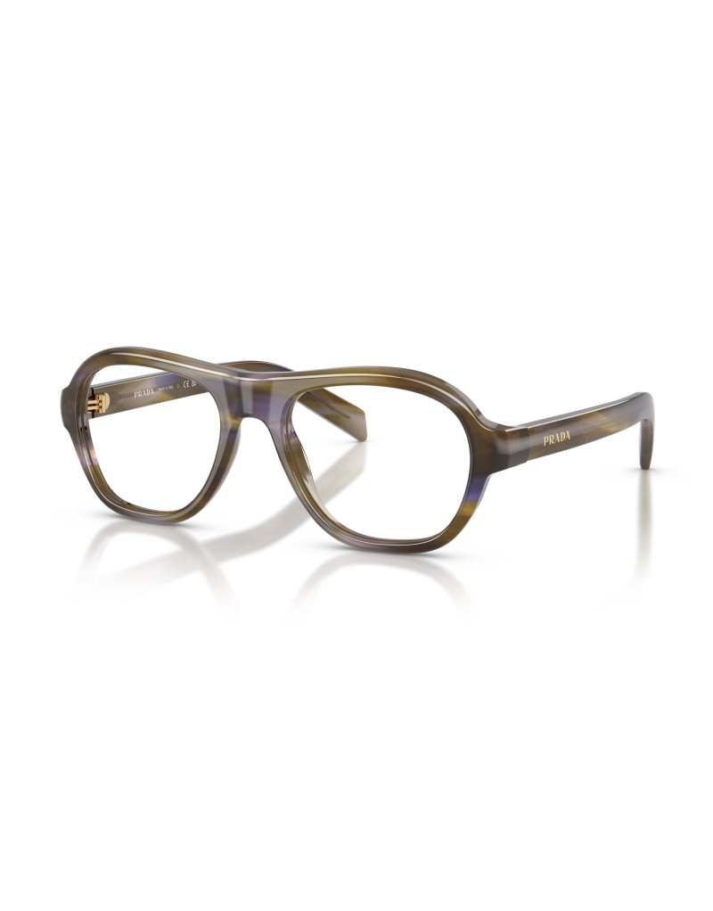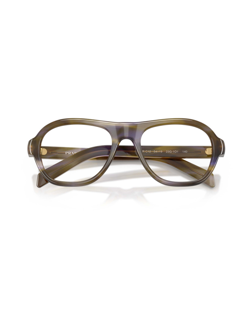 Occhiale da vista Prada C12V 16K1O1 in calibro 54, dal design contemporaneo che emerge chiaramente in questo nuovo modello della maison. Realizzato in acetato Striped lagoon lucido, unisce funzionalità ed eleganza, con una forma geometrica perfetta per un comfort personalizzato e il design pulito delle aste, impreziosito dal logo Prada.