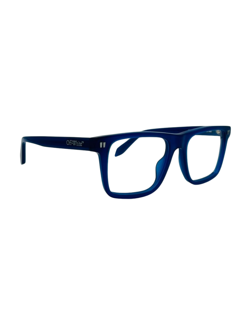 Occhiali da vista Off White OERJ08JF Eyewear Style 8J 4500 blue: montatura dal design contemporaneo in acetato blu lucido, caratterizzata da linee decise e logo iconico Off-White sulle aste. Leggeri, confortevoli e ideali per un look urbano e ricercato, garantiscono stabilità e stile per un utilizzo quotidiano con un tocco di glamour.