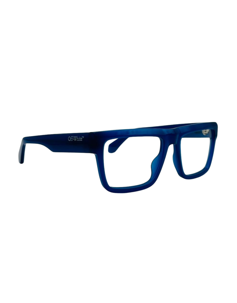 Occhiali da vista Off White OERJ08LF Eyewear Style 8L 4500 Blue: montatura in robusto acetato blu con design squadrato e aste arricchite dall’iconico logo Off-White in bianco, un modello perfetto per chi cerca un look street-chic sofisticato. La struttura full-rim garantisce una buona stabilità, comfort e stile per un uso quotidiano distintivo.
