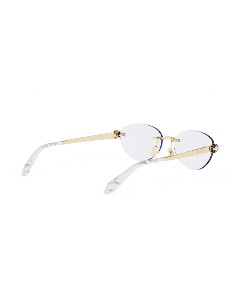 Bvlgari BV50072U 033 è un occhiale da vista da donna della linea Serpenti Forever dalla splendida montatura rimless e metallo lucido dorato sulle aspe, dal design elegante e sofisticato. La montatura cat-eye dona energia e personalità, un modello firmato Bulgari perfetto per completare look femminili e di classe.