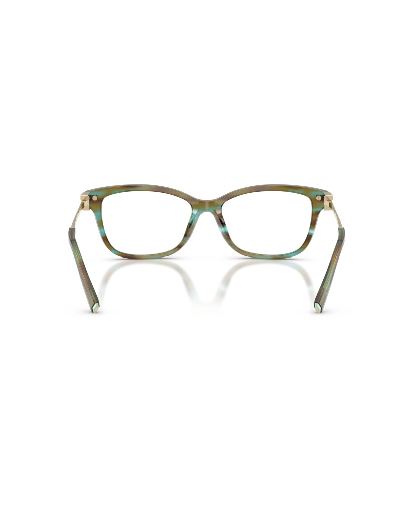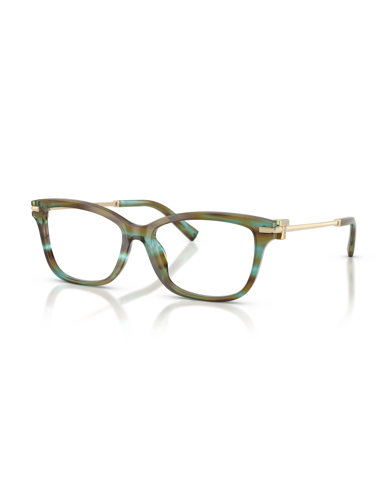 Occhiali da vista Tiffany & Co. 2288B 8124: montatura da vista femminile elegante e di carattere, realizzata in acetato multicolor che cattura la luce con un allure sofisticato e moderno. La forma quadrata leggermente arrotondata con calibro 55 mm valorizza i lineamenti ammorbidendo i tratti, perfetta per chi ama uno stile raffinato ma versatile nel quotidiano.