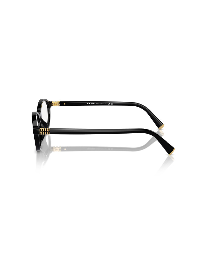 Occhiali da vista Miu Miu MU 09XV 16K1O1: una montatura in acetato nero, elegante e versatile, con lenti demo pronte per essere personalizzate secondo le tue esigenze visive. La forma rotonda-ovale, femminile e moderna, dona equilibrio al volto con un tocco di carattere. Perfetti per chi cerca uno stile sofisticato ma facile da abbinare ogni giorno, con un’estetica fashion che eleva ogni look.