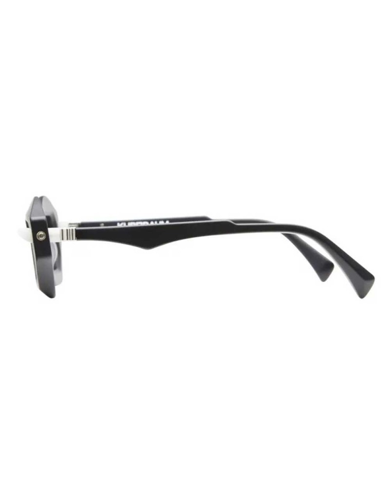 Occhiali da sole Kuboraum dal design originale, interessante geometria e lente chiara che lascia trasparire lo sguardo, realizzati interamente in Italia in acetato di cellulosa di alta qualità.