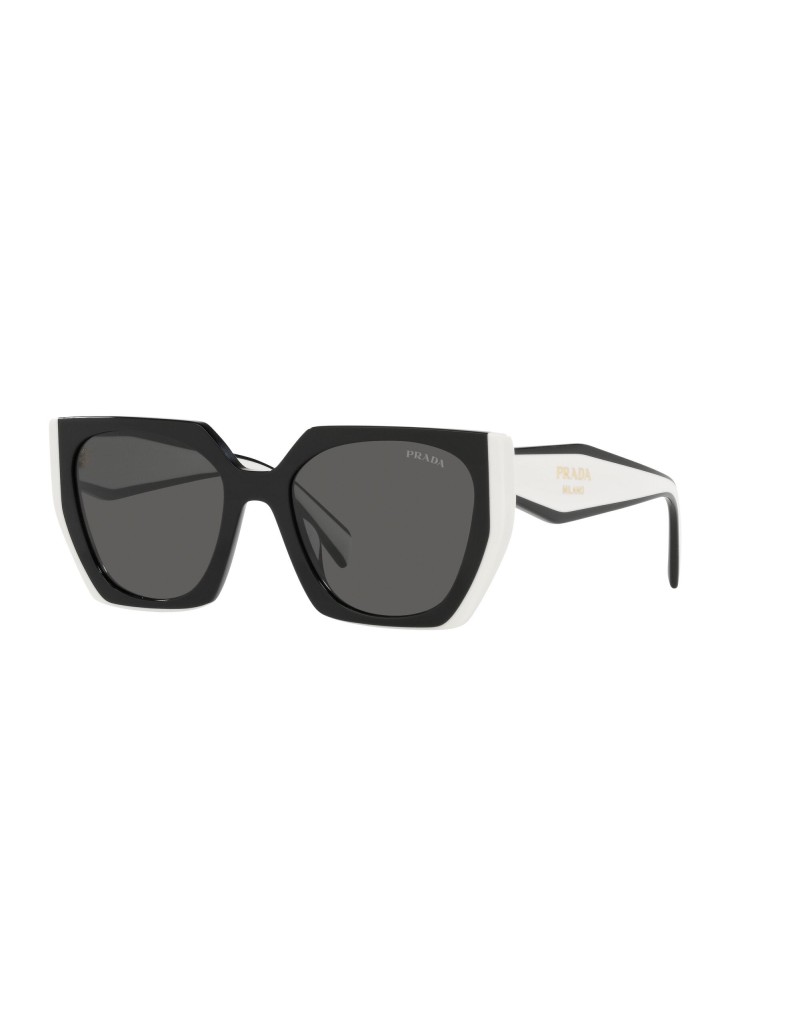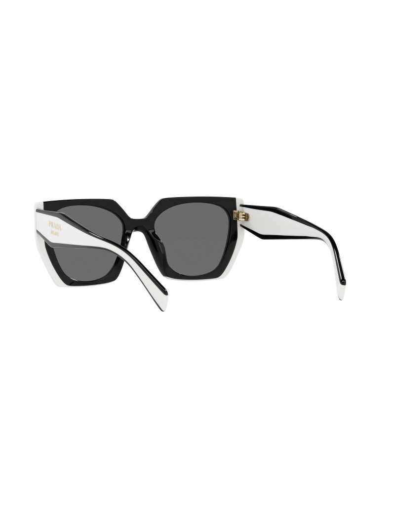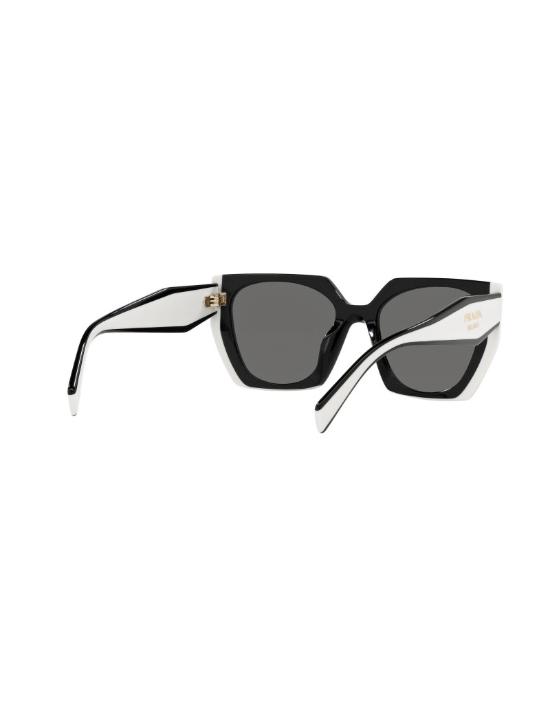 Occhiali da sole irregolari ampi e leggeri cpn montatura nera e bianca e lente scure protezione 100% raggi uv.