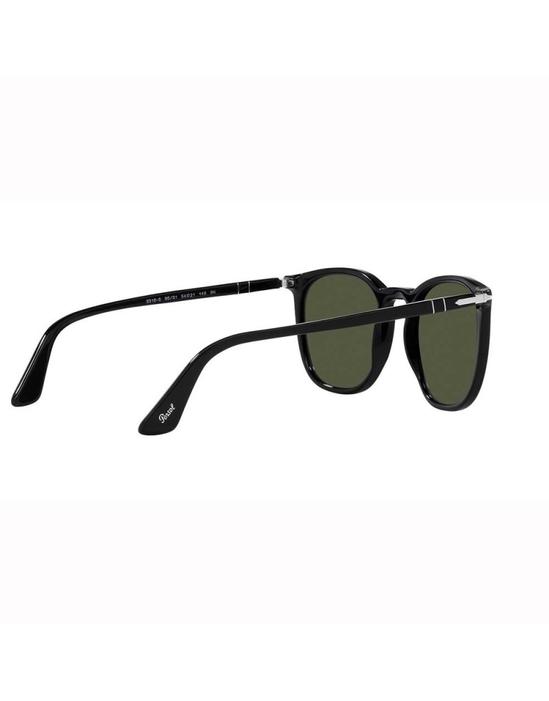 Occhiali da sole Persol quadrati in acetato lucido ed elegante freccia supreme sul musetto. Questo modello vanta una lente verde scura in minerale, per il massimo del comfort visivo.