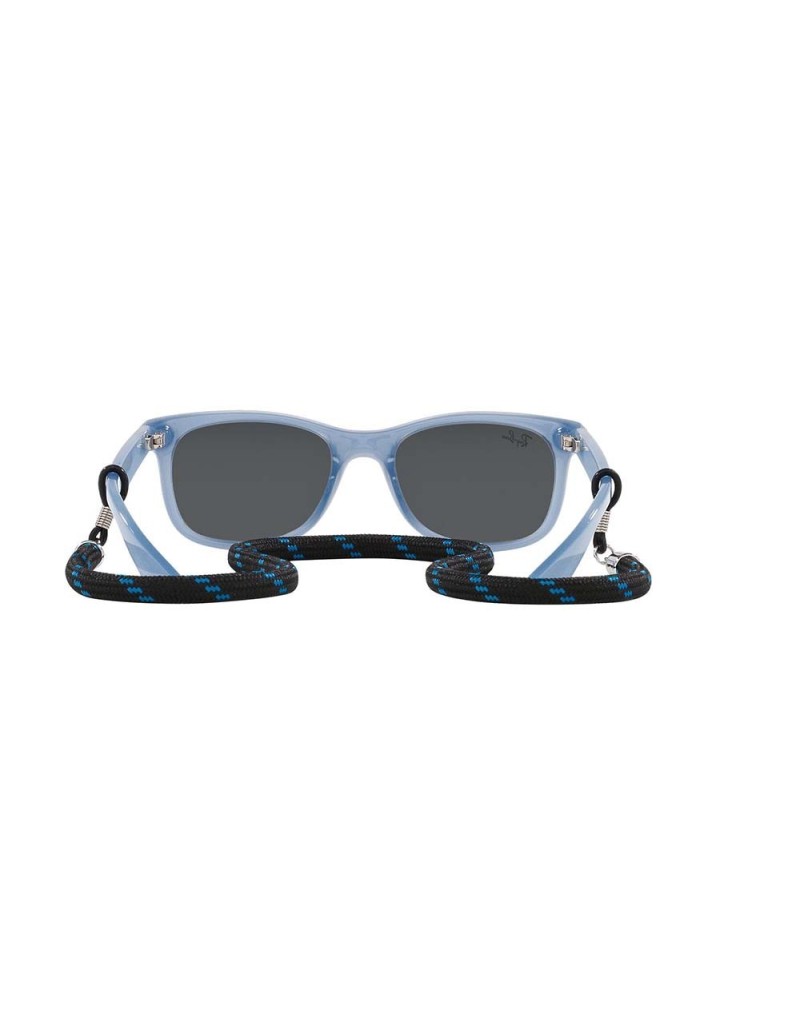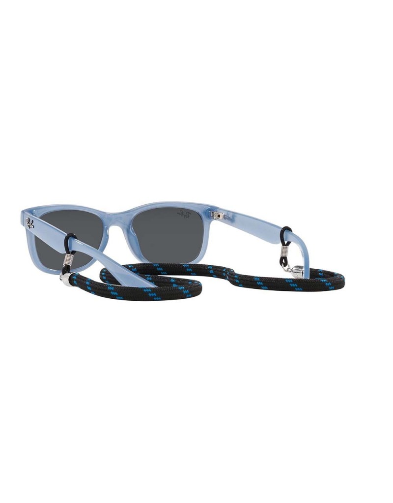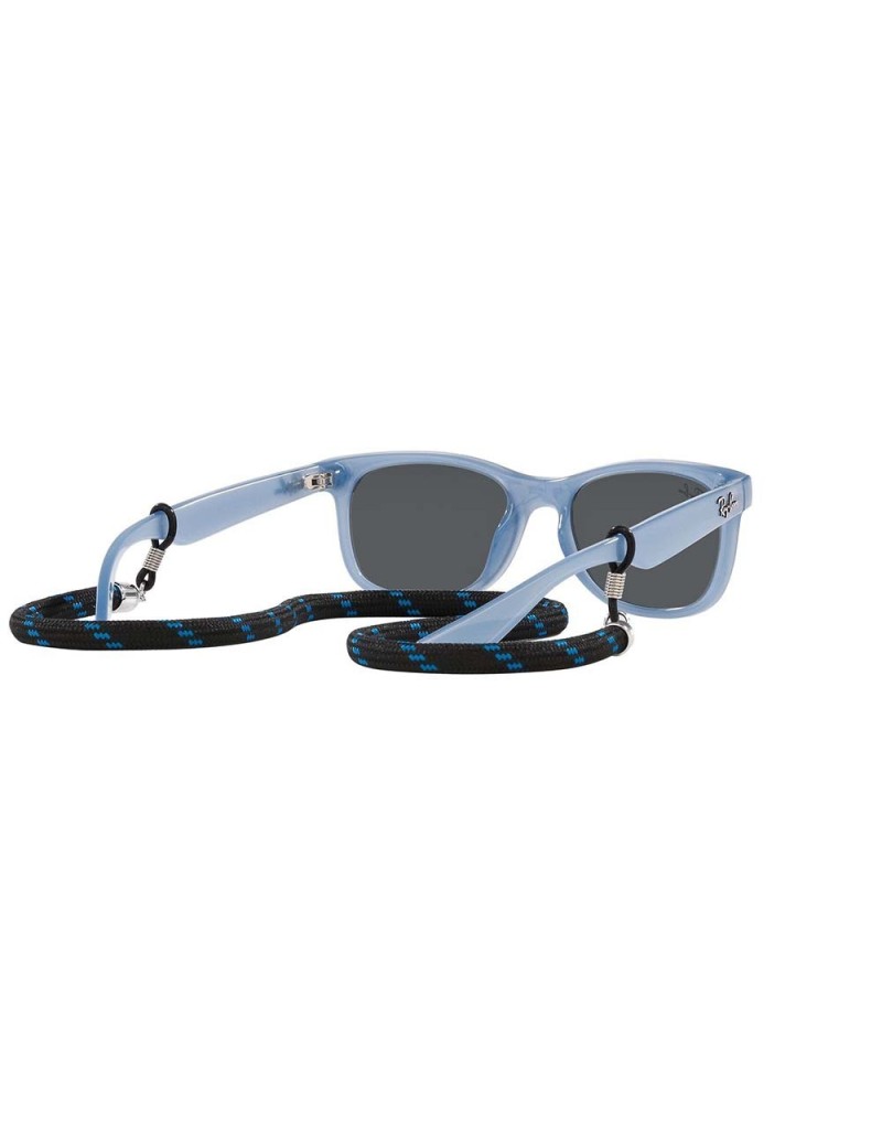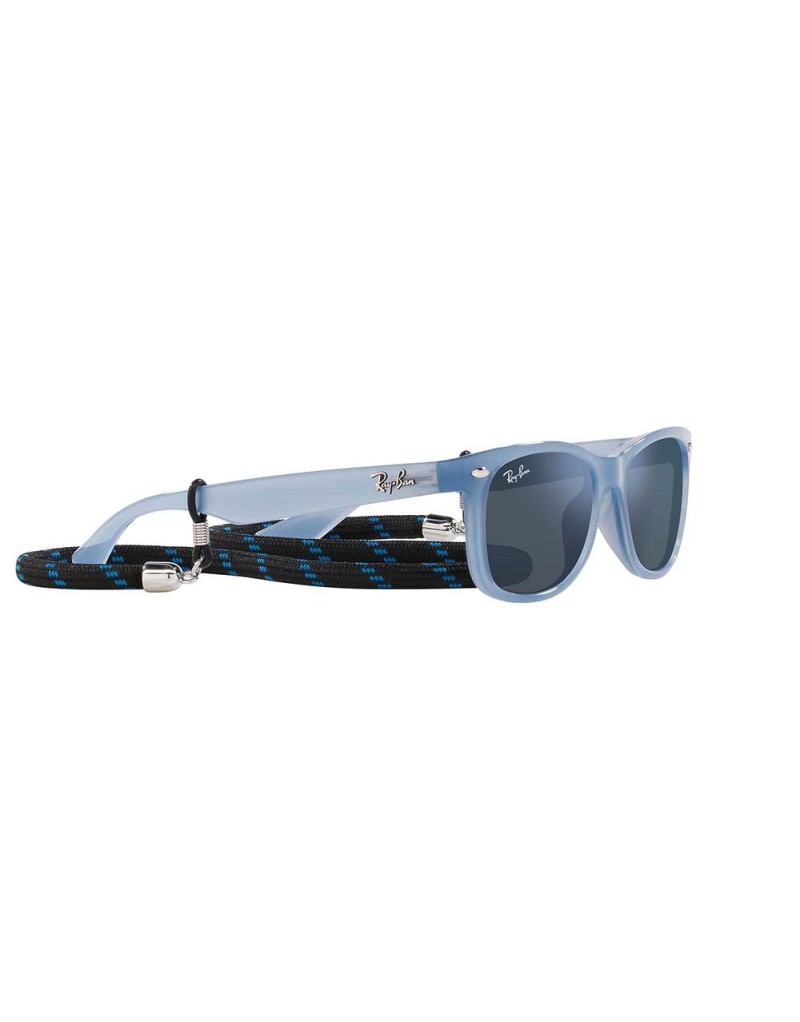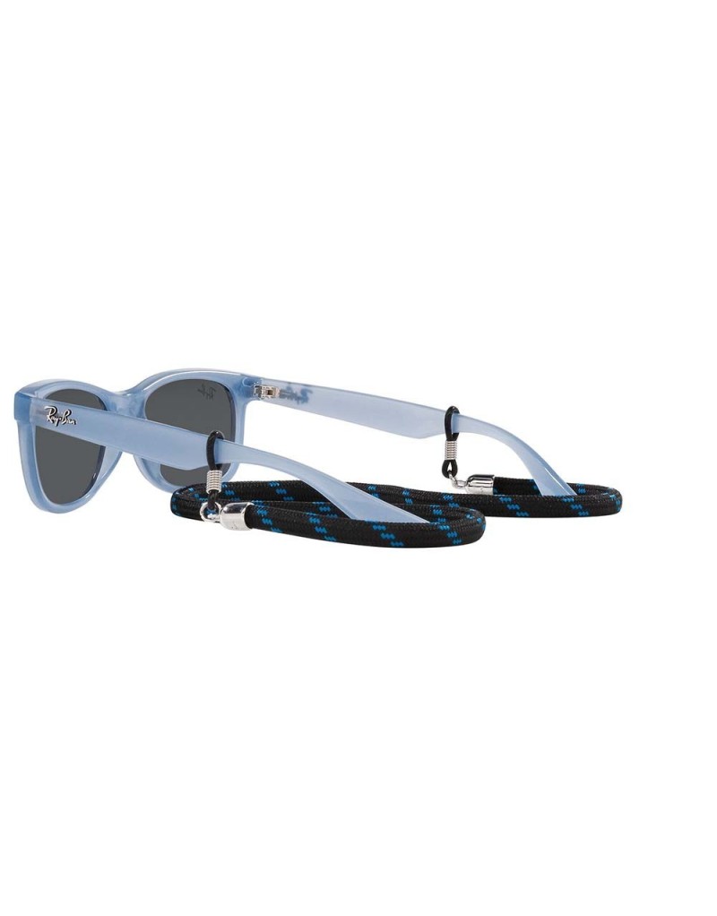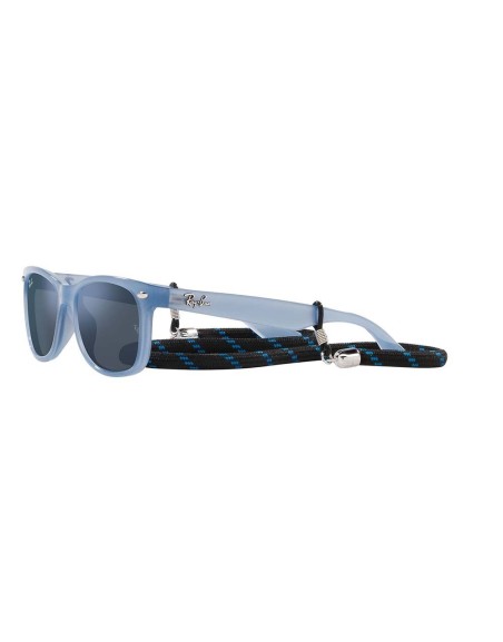 Occhiali da sole Ray-Ban Junior Wayfarer con montatura leggera, cordino e lenti certificate 100% raggi UV.