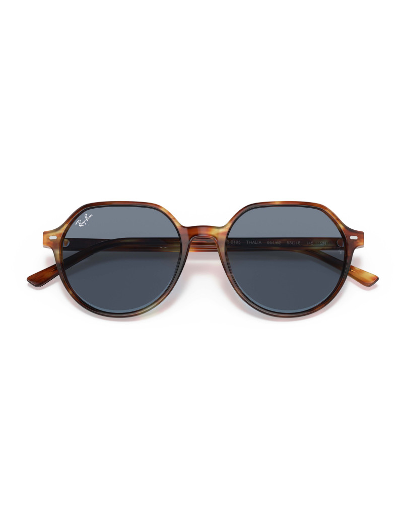 Gli occhiali da sole Ray-Ban Thalia RB 2195 954/62 53 presentano una montatura in acetato havana e lenti blu, con una forma retrò che conferisce un look elegante e sofisticato. Questo modello è ideale per chi cerca uno stile distintivo e di qualità.