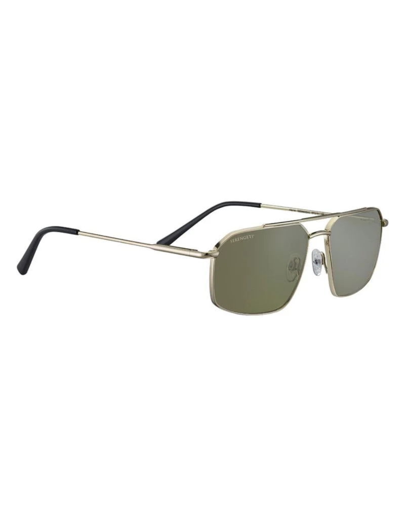 Gli occhiali da sole Serengeti Wayne SS546001 sono occhiali da sole navigator dal design classico con doppia barra frontale, montatura in metallo lucido e aste con terminali in acetato regolabili. Le cerniere a molla garantiscono comfort e durata, perfetti per chi cerca uno stile elegante ma robusto.