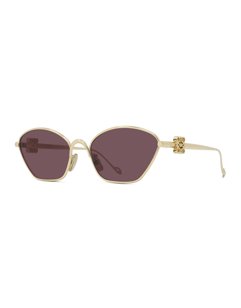 Occhiali da sole Loewe con montatura in metallo extraleggera con finitura dorata. Un design allungato con una forma cat-eye molto raffinata impreziosito dal logo 3D Loewe Anagram sull’asta. Le lenti nei toni del rosa rendono questo occhiale un accessorio unico per dare originalità ad ogni look