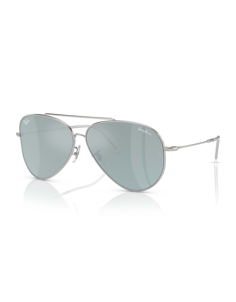 Gli occhiali da sole Ray-Ban R0101S 003/30 presentano una montatura in metallo color argento con lenti in vetro minerale argentate. Questo modello fa parte della collezione Aviator Reverse, che reinterpreta il classico design aviator con lenti concave, offrendo un look moderno e distintivo. La forma a goccia e il doppio ponte sono caratteristiche iconiche di questo stile.