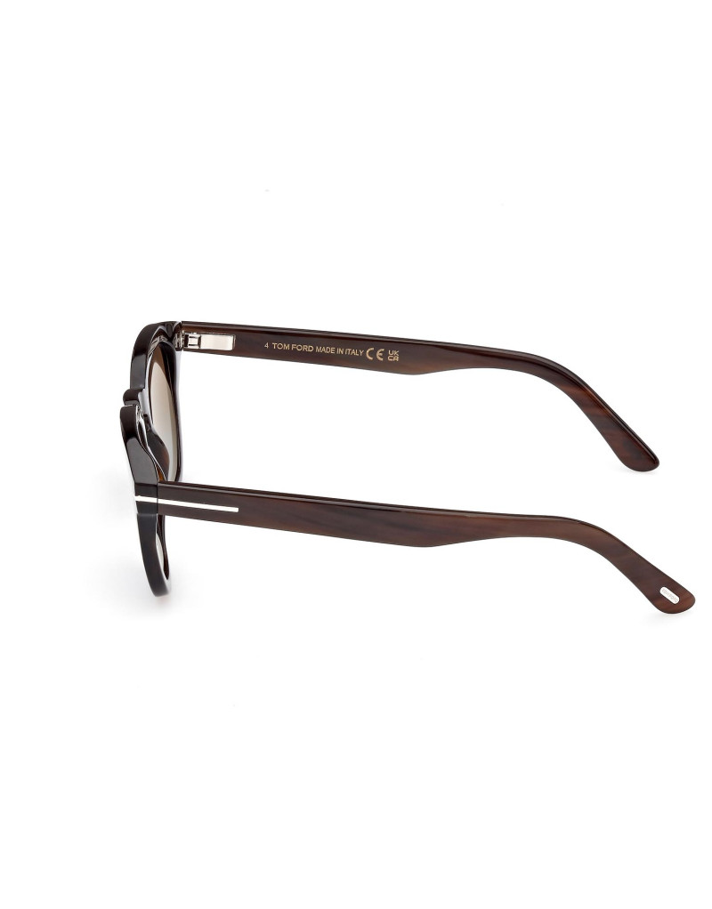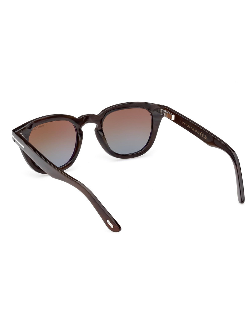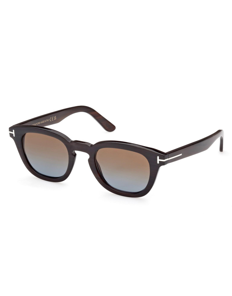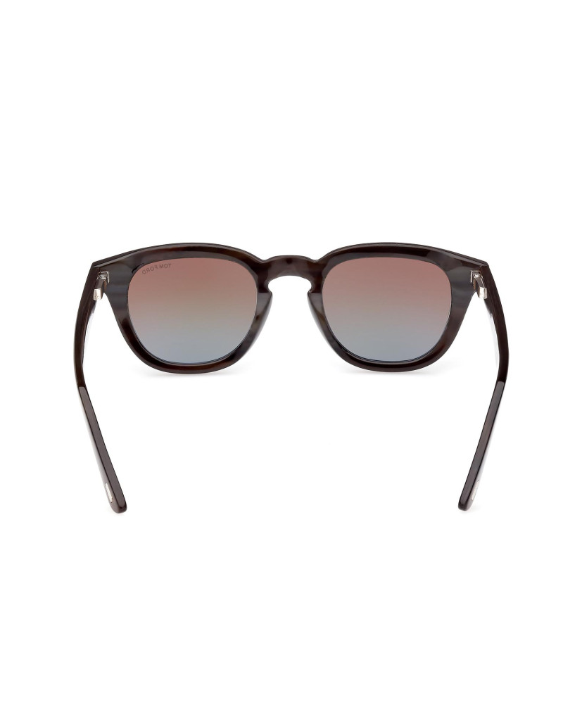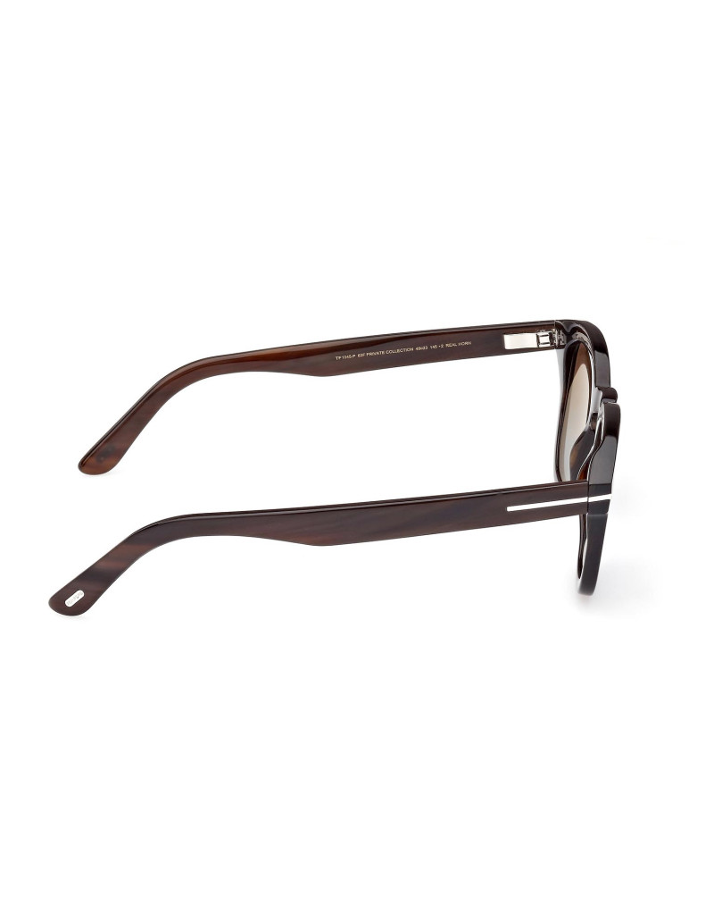 Montatura da sole Tom Ford Private Collection in corno di bufalo, dalla linea rettangolare, contraddistinta da logo oro T su aste e musetti.