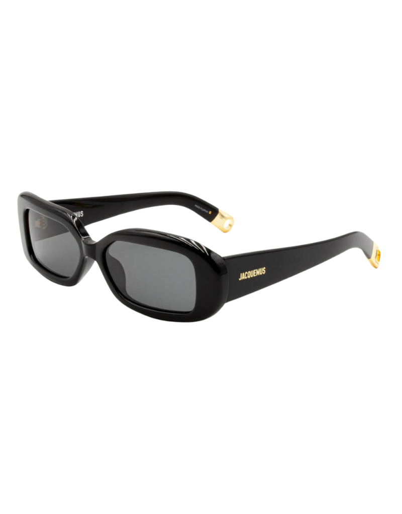 Occhiali Jacquemus da Sole in stile minimal realizzati in acetato lucido nero, con lente scura.