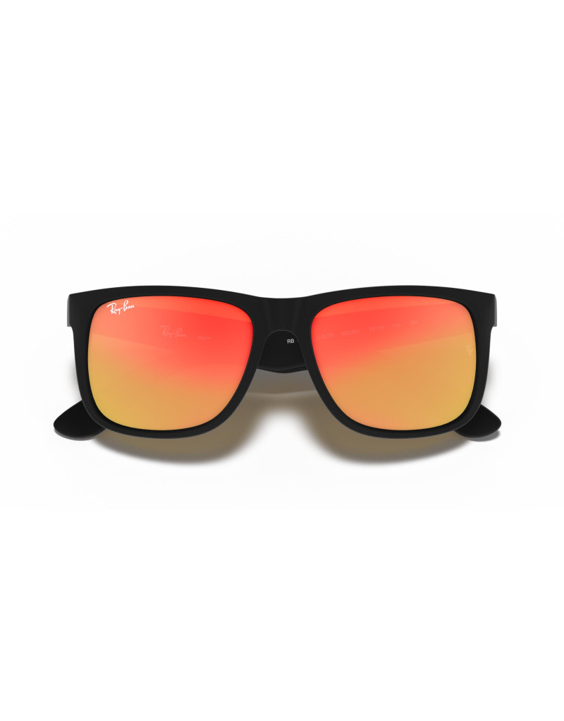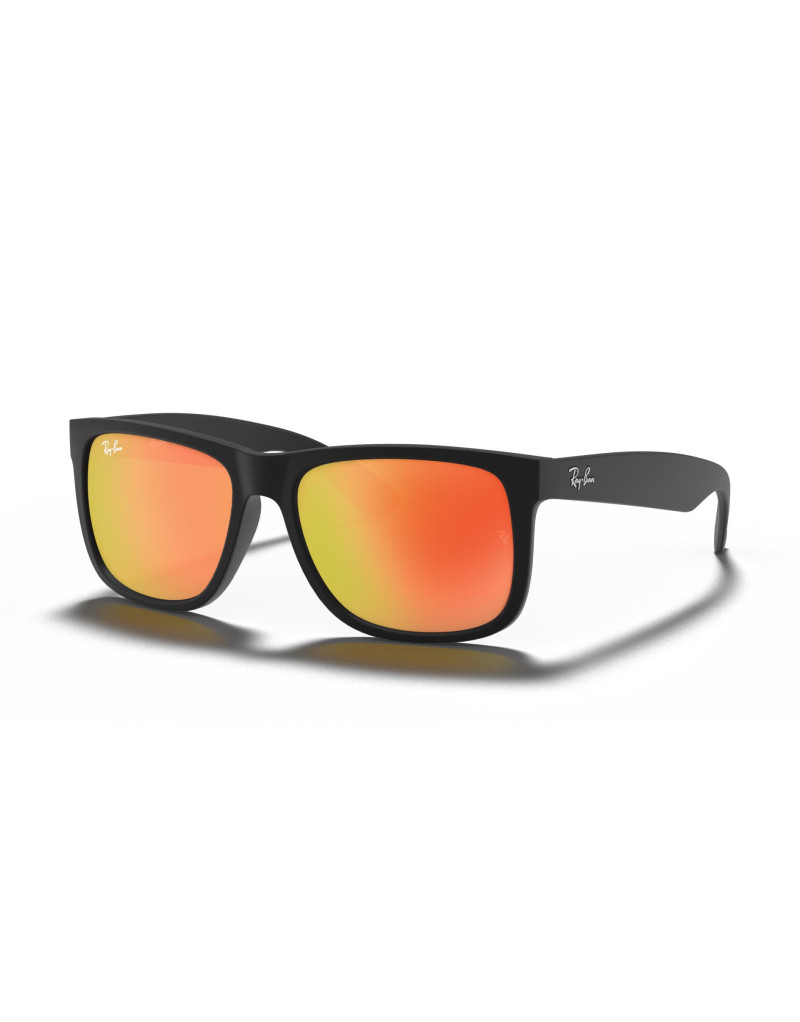 Modello Justin iconico nella sua forma squadrata. Presenta una gommatura su tutta la montatura e lenti specchiate.