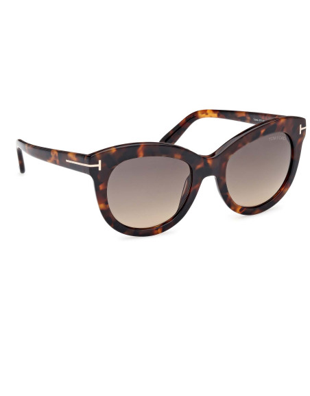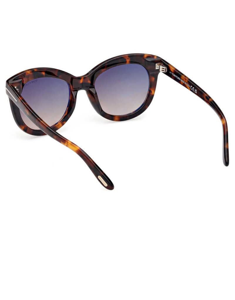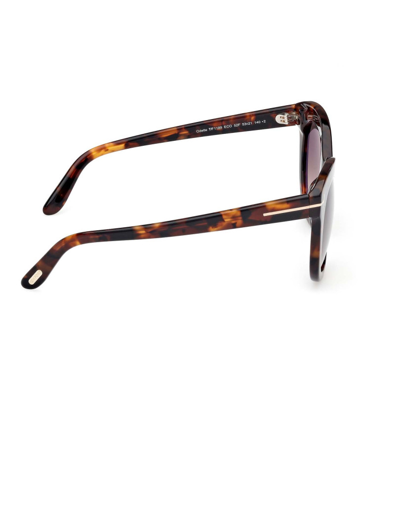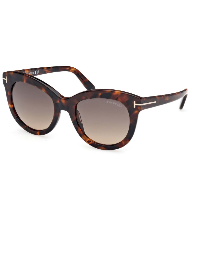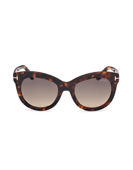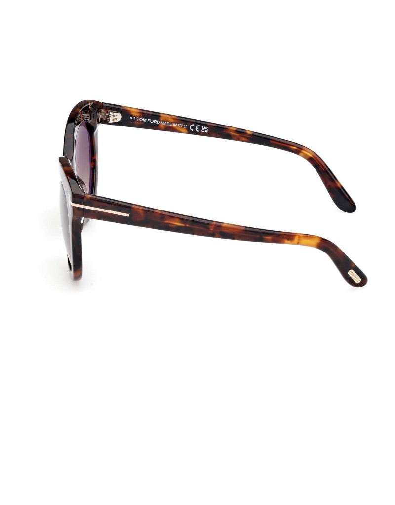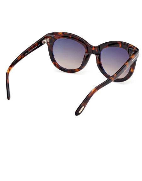 Montatura da sole Tom Ford donna dalla linea elegante, arricchita da punto luce dorato caratterizzato dall’iconica T, che si sviluppa lungo le aste e termina sul frontale.