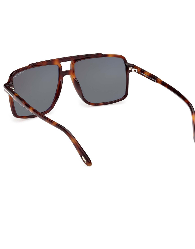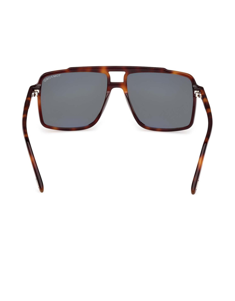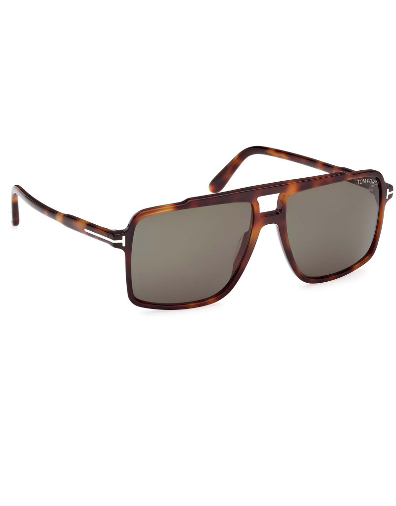 Montatura da sole Tom Ford uomo pilot dalla linea vintage e il profilo squadrato. Caratterizzata dal logo a forma di T su aste e frontale.