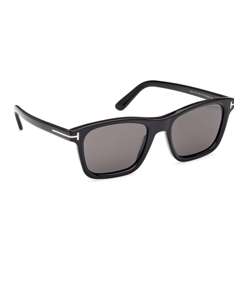 Montatura da sole Tom Ford uomo dalla linea elegante squadrata , arricchita dall’iconica T in metallo visibile dal frontale.