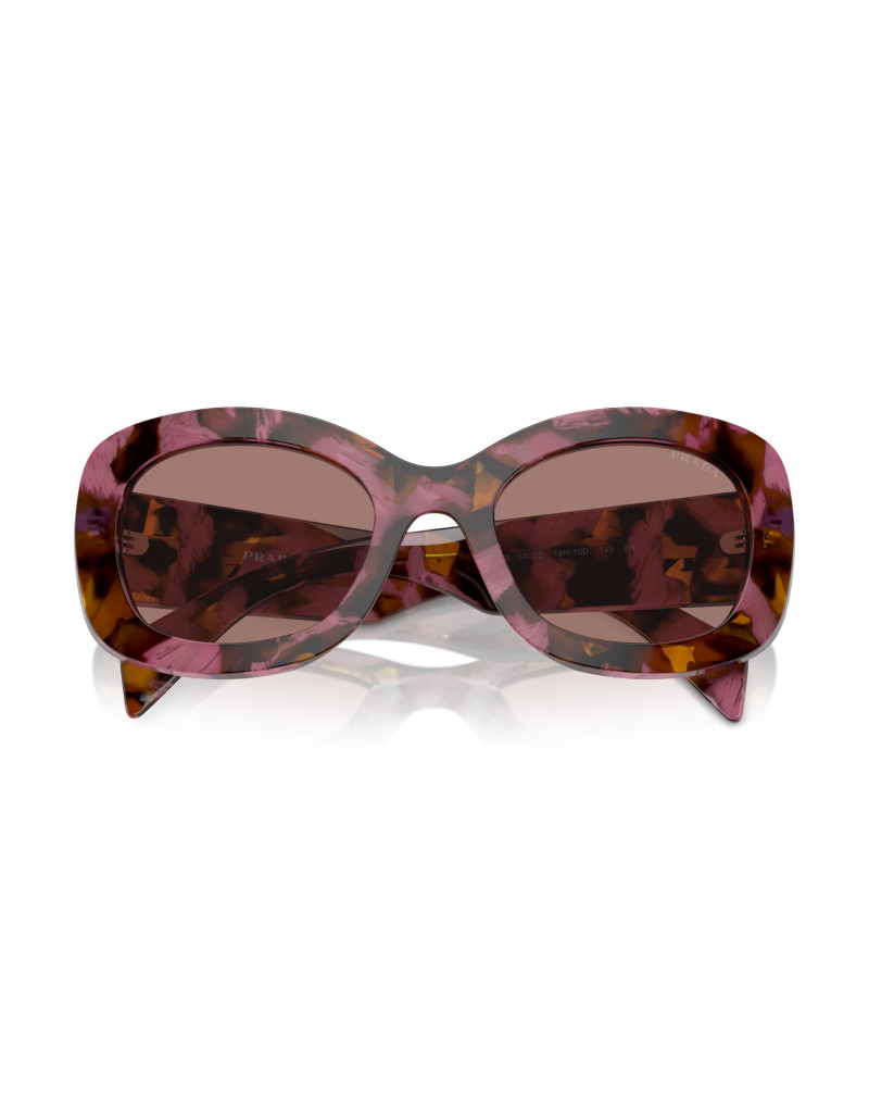 Occhiali da Sole Prada da Donna, ampi, in pregiato acetato di cellulosa, con montatura tartarugata marrone e begonia. Le lenti marrone chiaro proteggono al 100% dai raggi UV lasciando trasparire lo sguardo, per un fascino senza tempo.